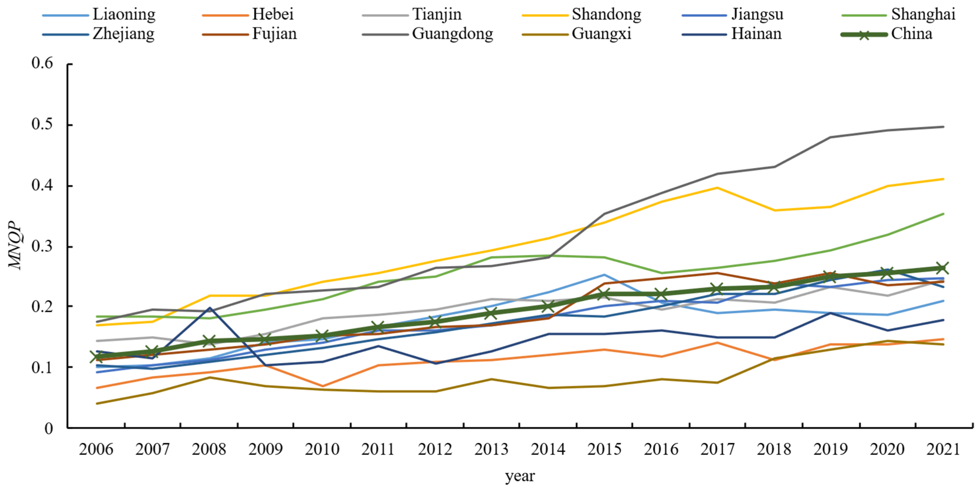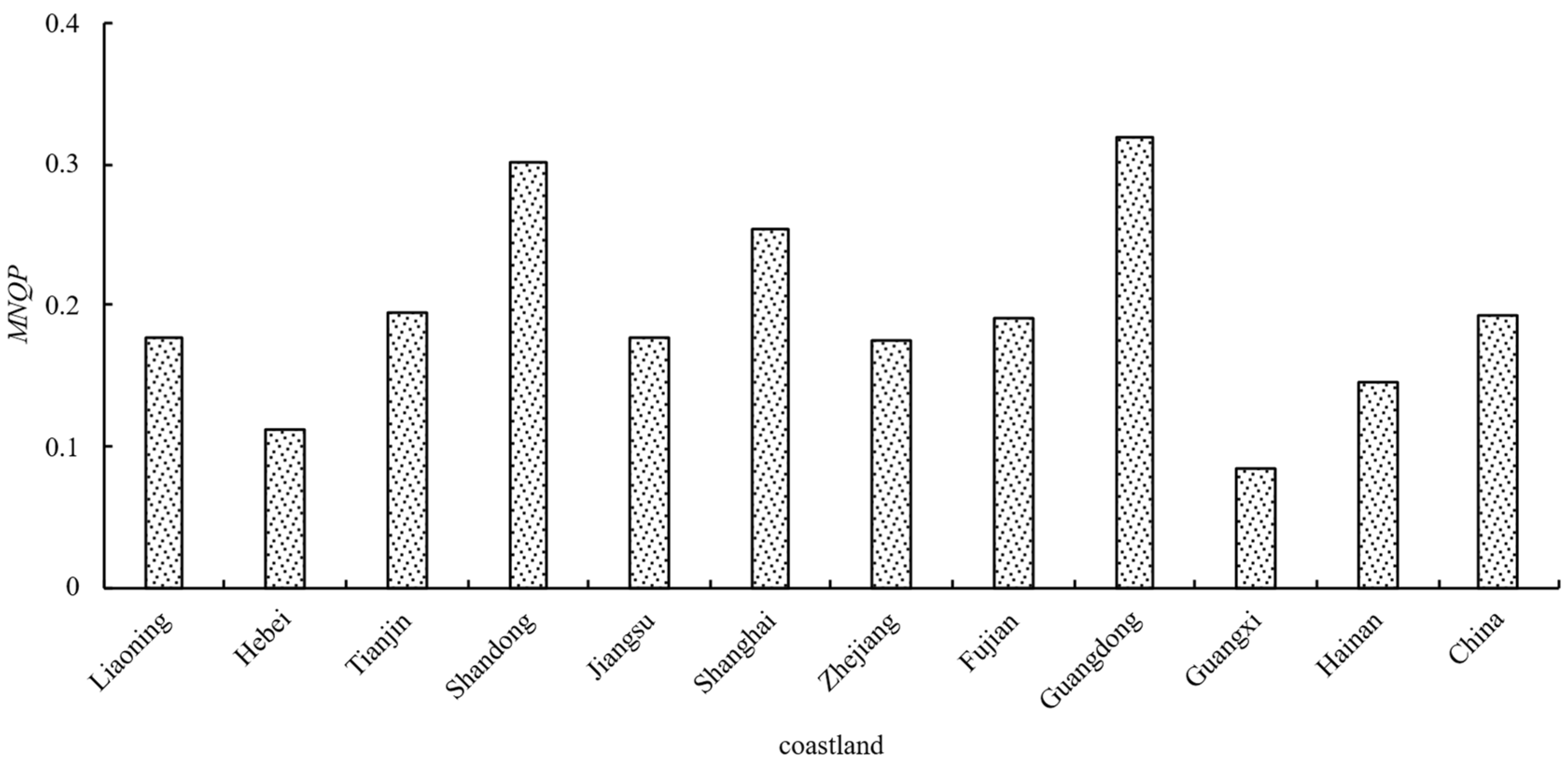 | MNQP | Basic structure | Labour | Labour productivity | Marine labour productivity | Gross marine product (yuan)/persons employed in the coastal zone (number) |
