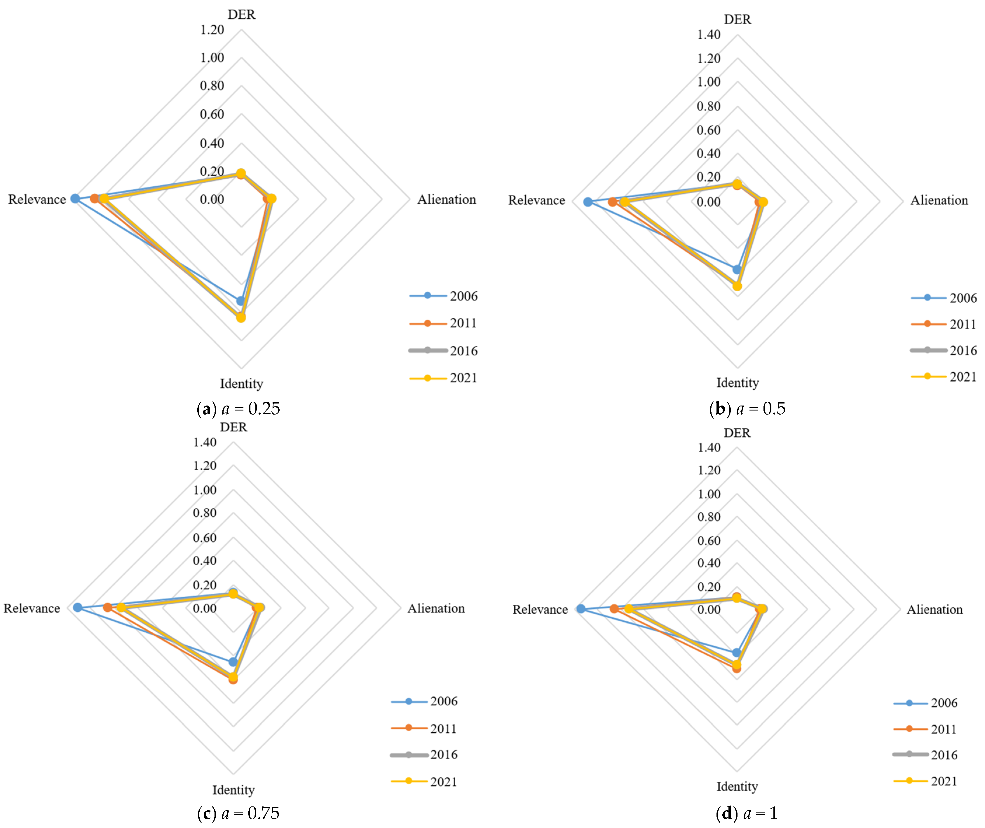 | α = 0 | α = 0.25 | α = 1 | α = 1.3 | α = 1.6 | |