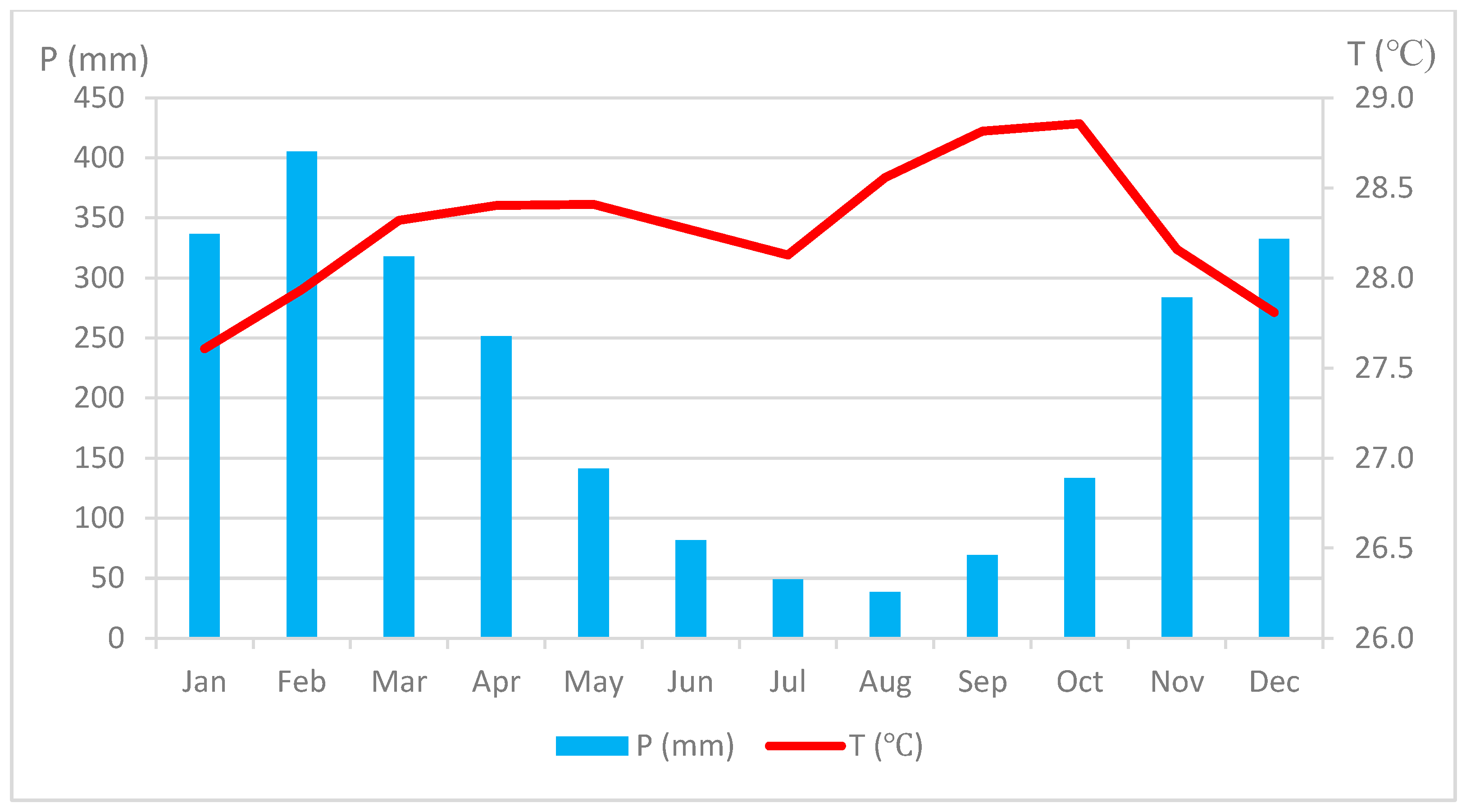 | Tav (°C) | 27.7 | 28.3 | 28.4 | 28.6 | 28.7 | 28.4 | 28.8 | 29.1 | 28.8 | 28.0 | 28.3 | 28.1 |