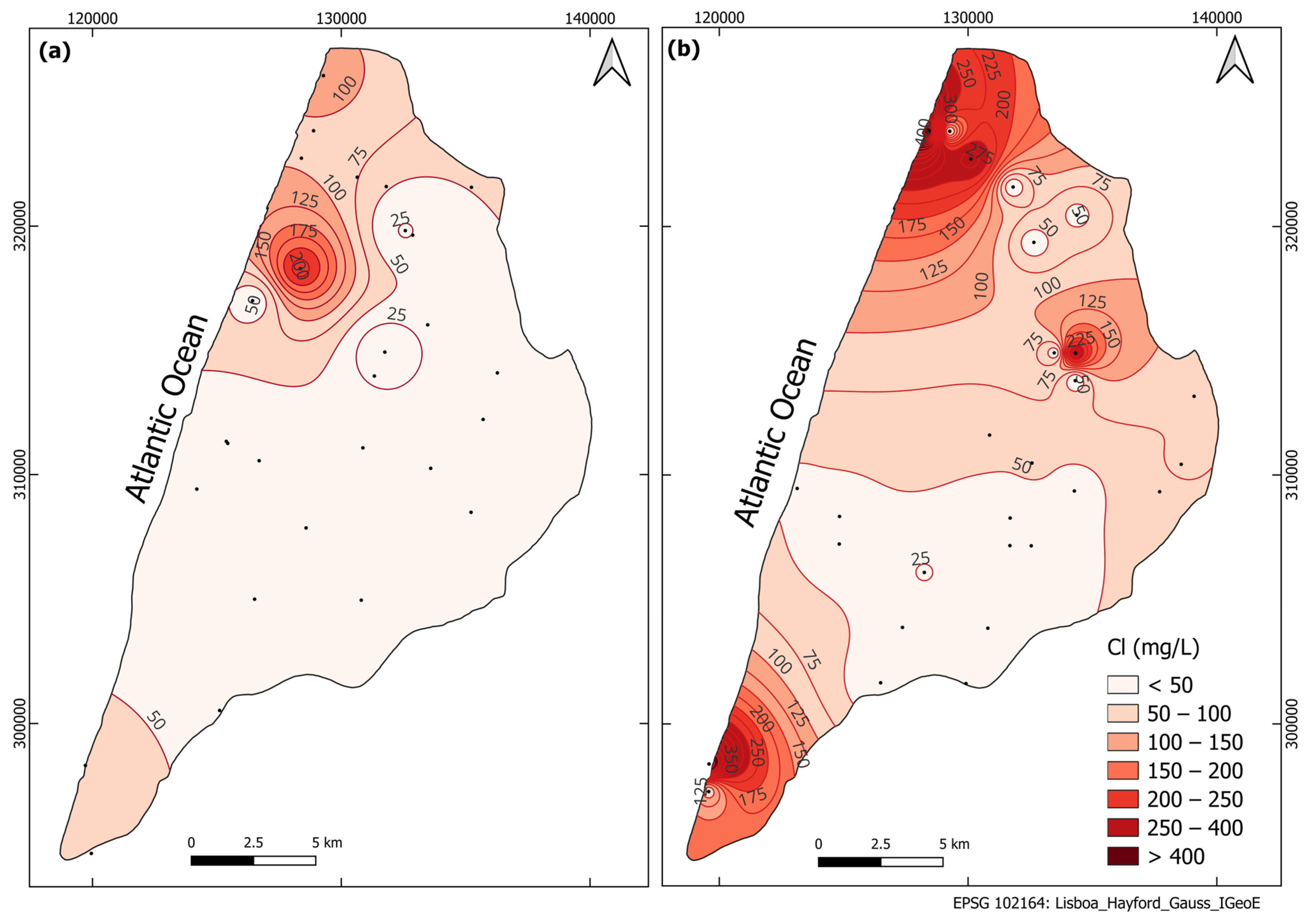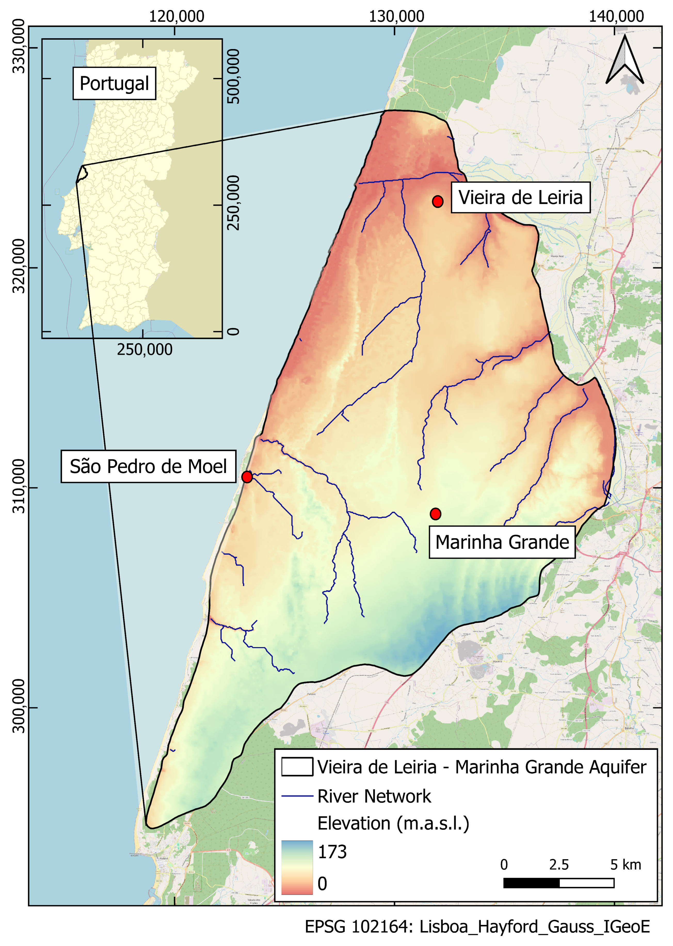 - Condesso de Melo, M.T. Flow and Hydrogeochemical Mass Transport Model of the Aveiro Cretaceous Multilayer Aquifer (Portugal). Ph.D. Thesis, University of Aveiro, Aveiro, Portugal, 2002. [Google Scholar]