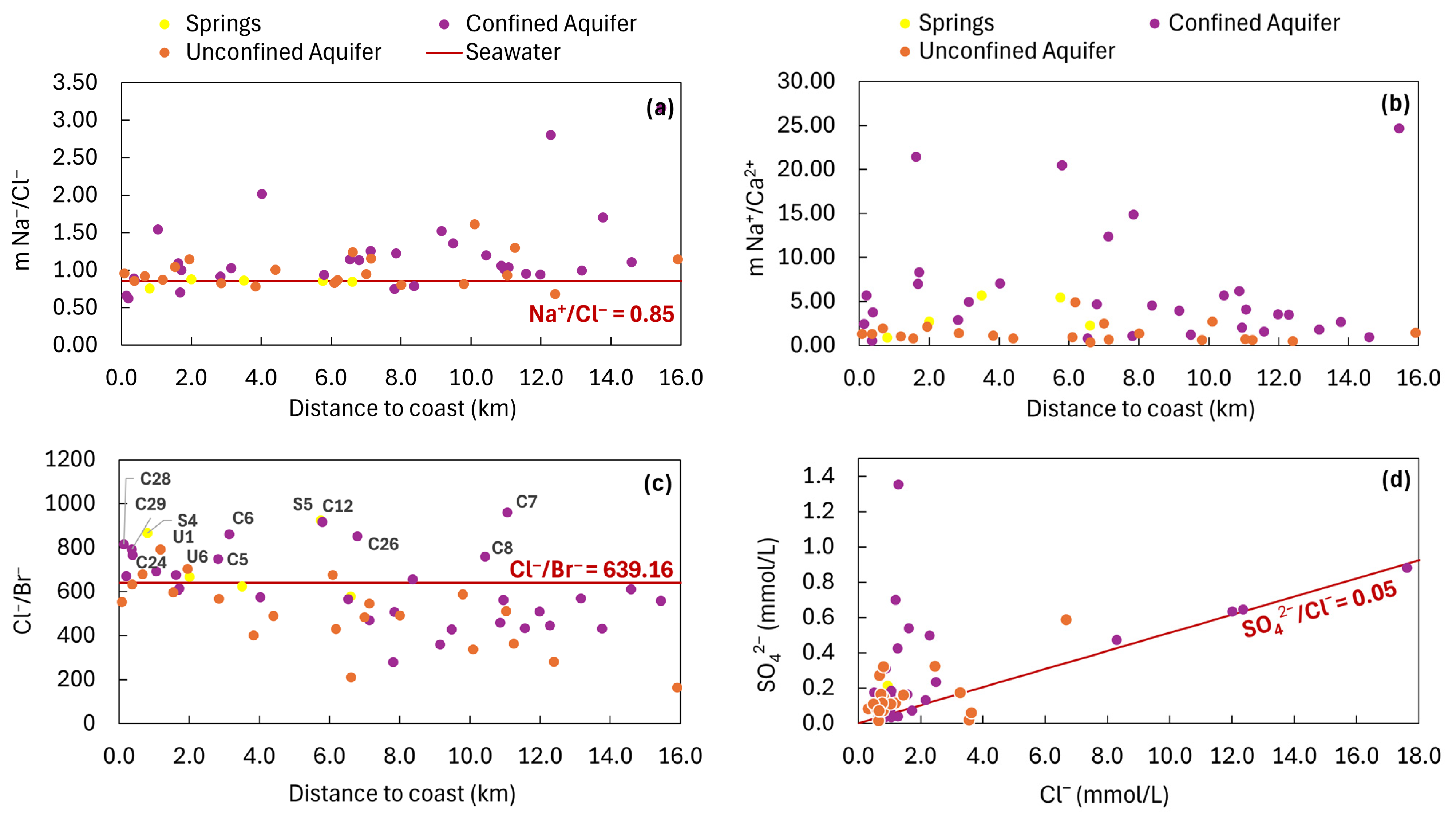 - Alcalá, F.J.; Custodio, E. Using the Cl/Br Ratio as a Tracer to Identify the Origin of Salinity in Aquifers in Spain and Portugal. J. Hydrol. 2008, 359, 189–207. [Google Scholar] [CrossRef]