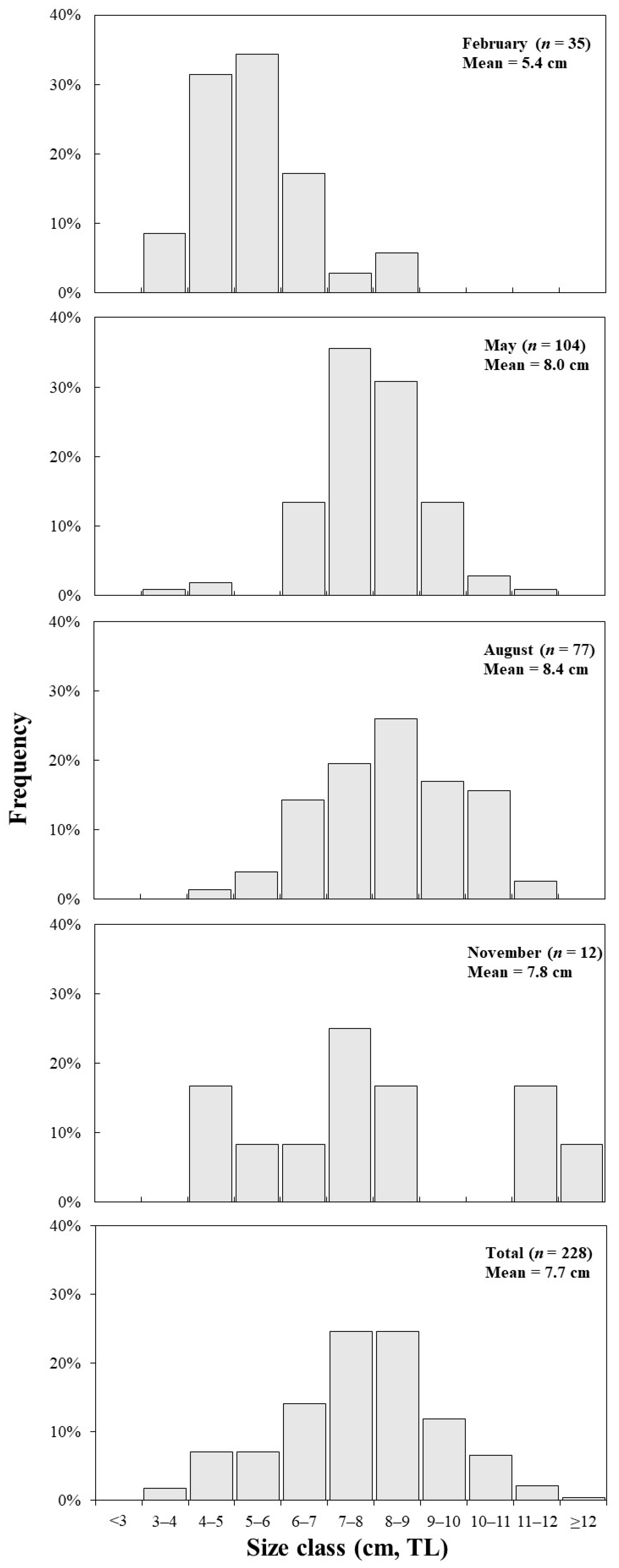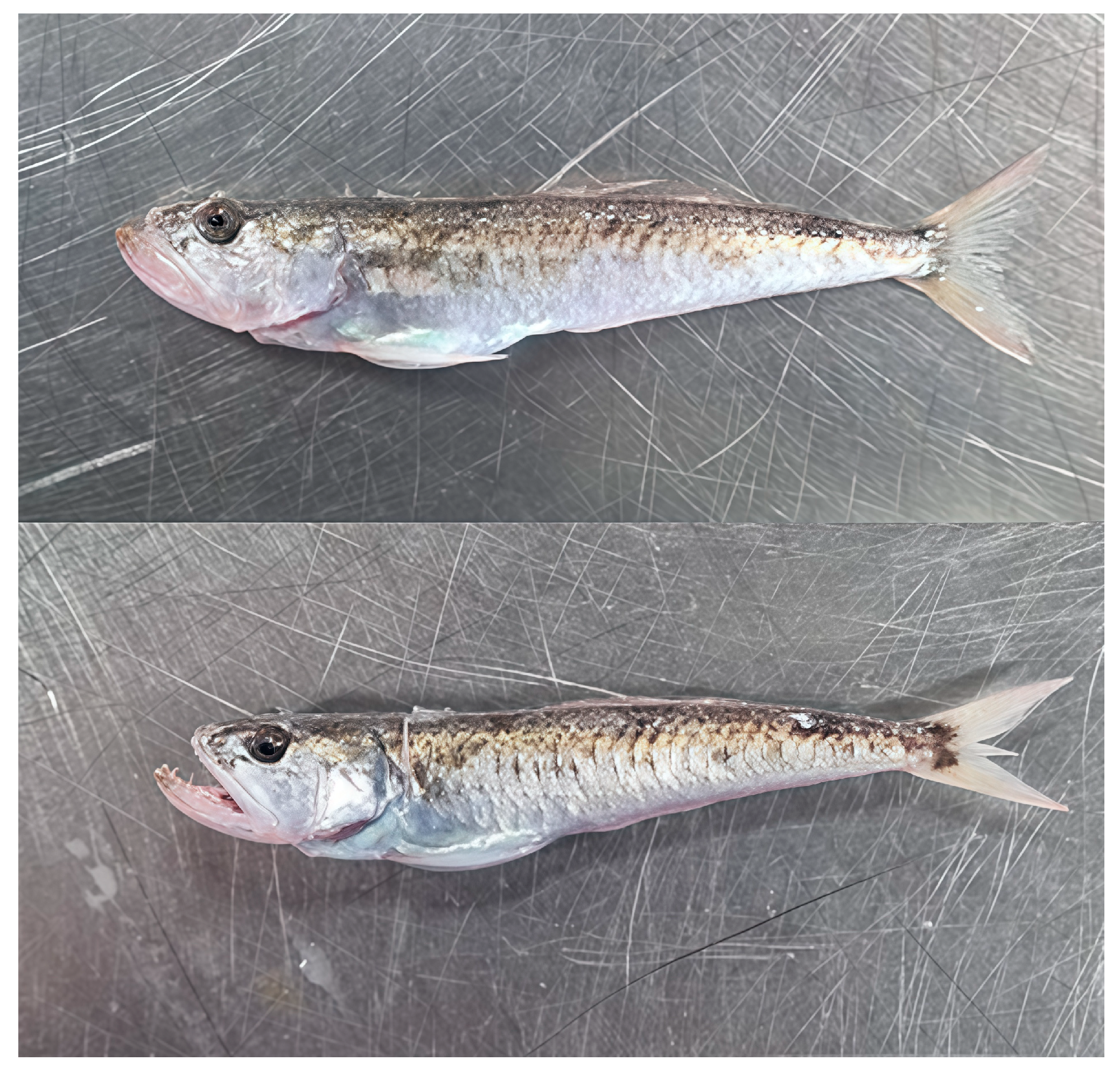 - Jeong, J.M.; Lee, S.J.; Baeck, G.W. Feeding ecology of smallmouth Argentine Argentina kagoshimae in coastal waters of the South Sea, Korea. Korean J. Fish. Aquat. Sci. 2022, 55, 590–597. [Google Scholar]