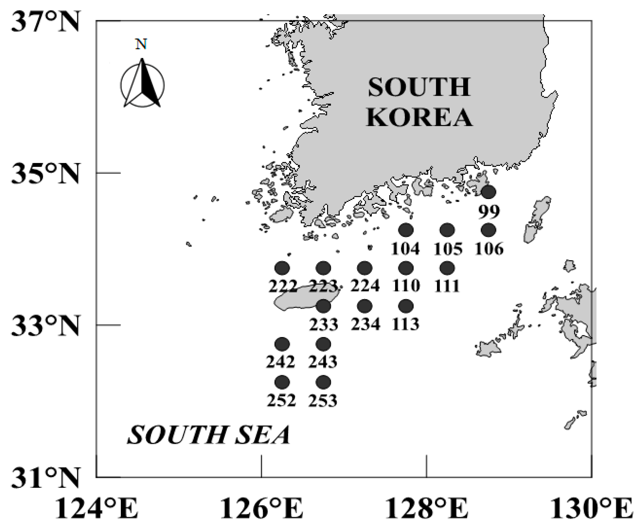 - Park, W.G.; Ma, C.W.; Hong, S.Y.; Lee, K.W. Distribution and abundance of planktonic shrimps in the southern sea of Korea during 1987–1991. Fish. Aquat. Sci. 2009, 12, 240–248. [Google Scholar] [CrossRef][Green Version]
