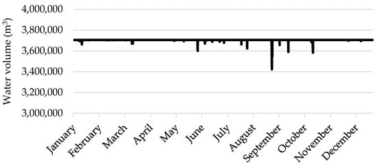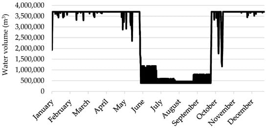 Seasonal variation in the reservoir water volume for the first scenario (m3).