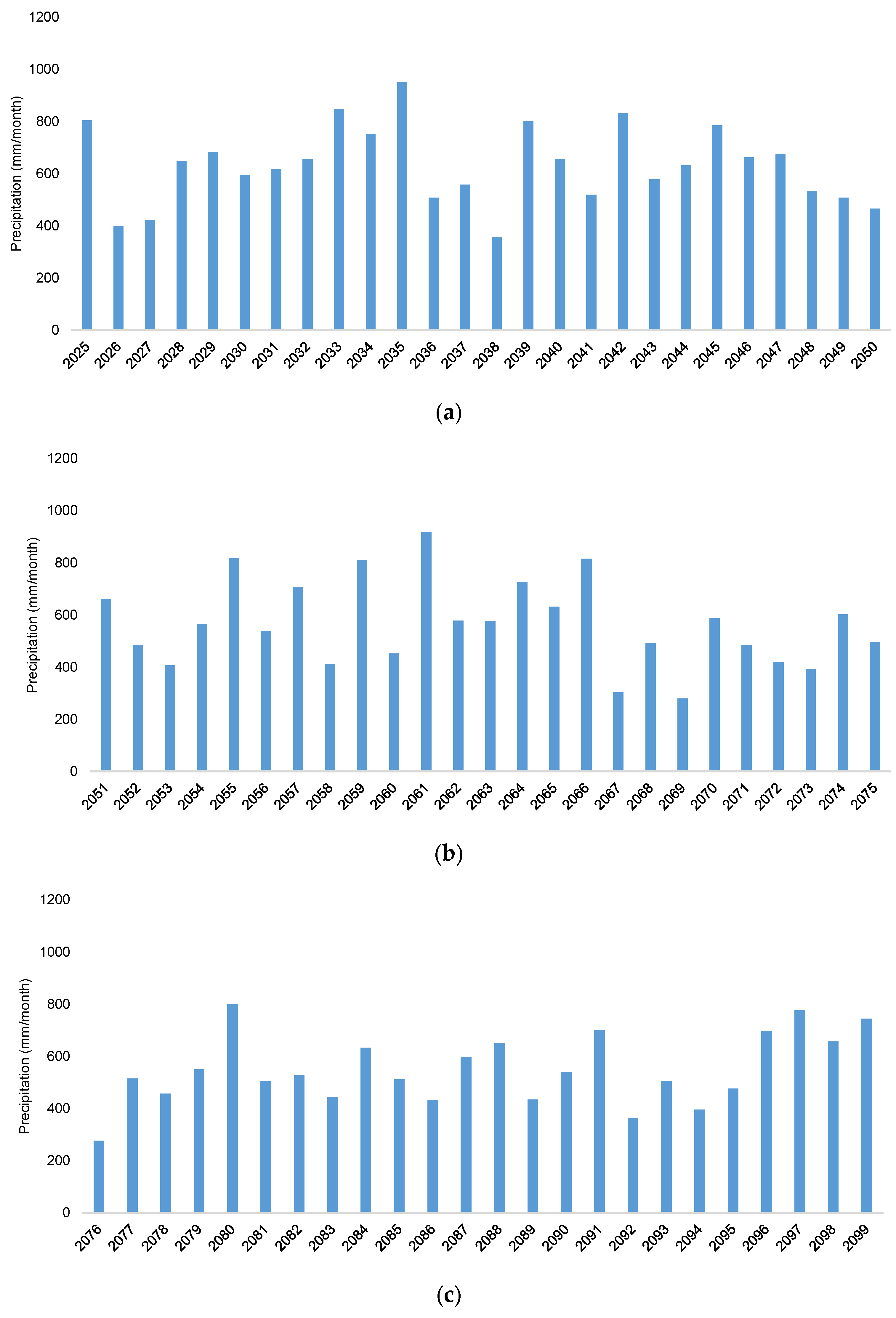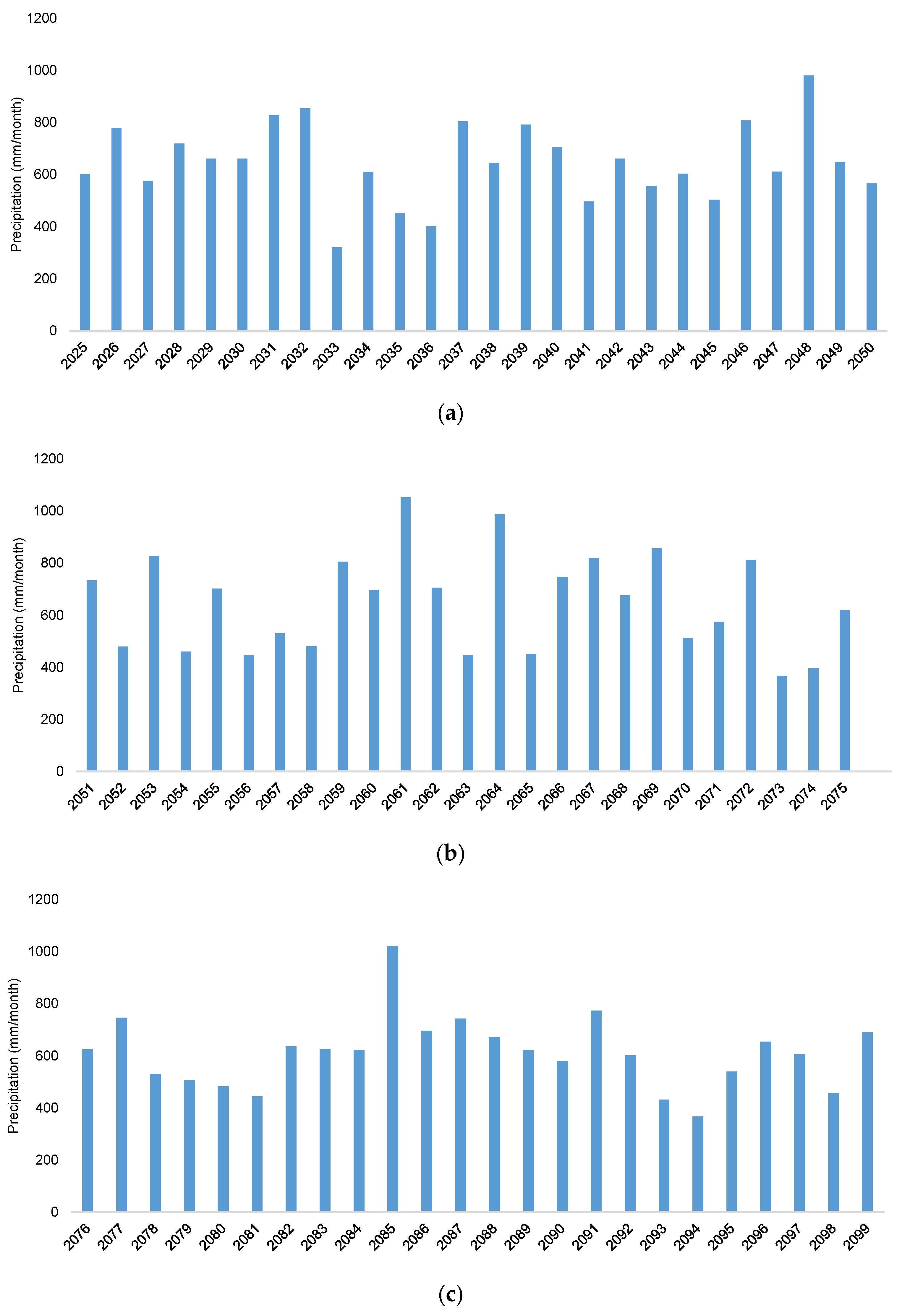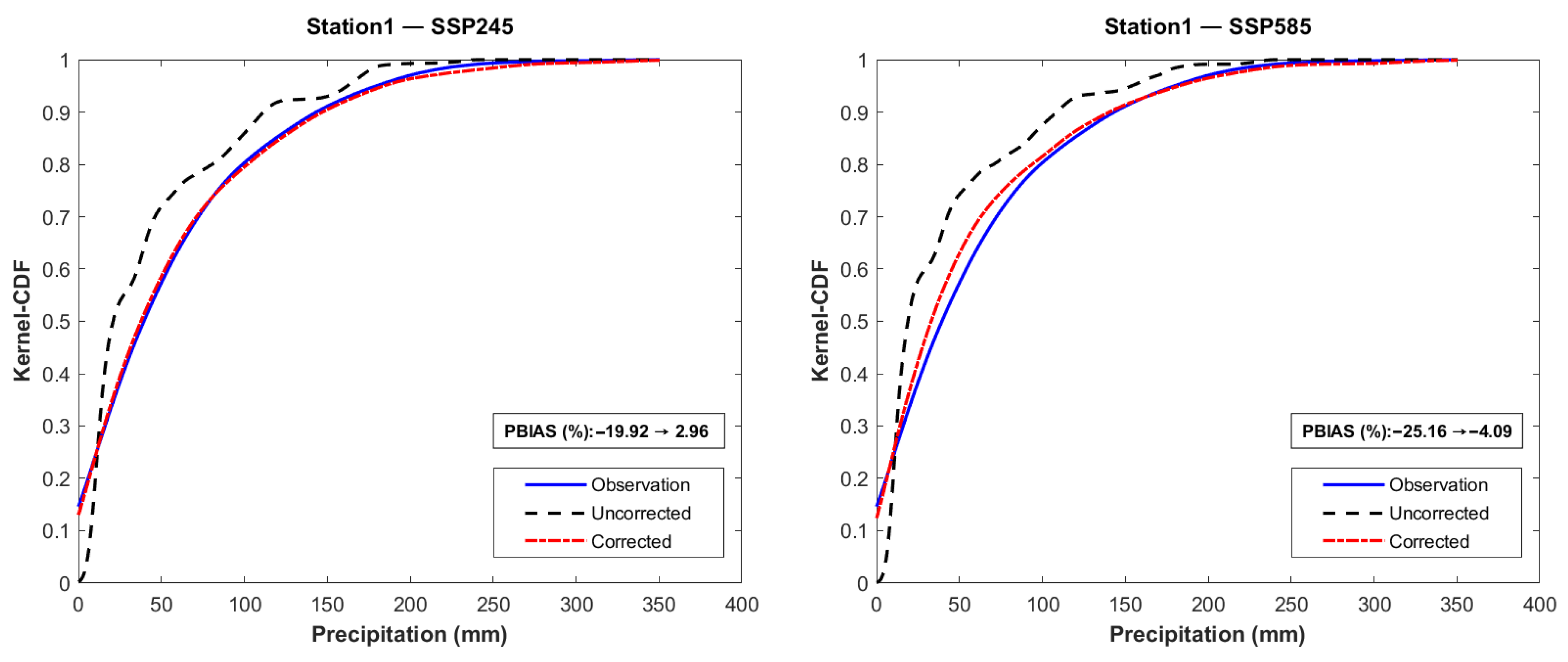 3.3. Downscaling of Future Precipitation and Bias Correction