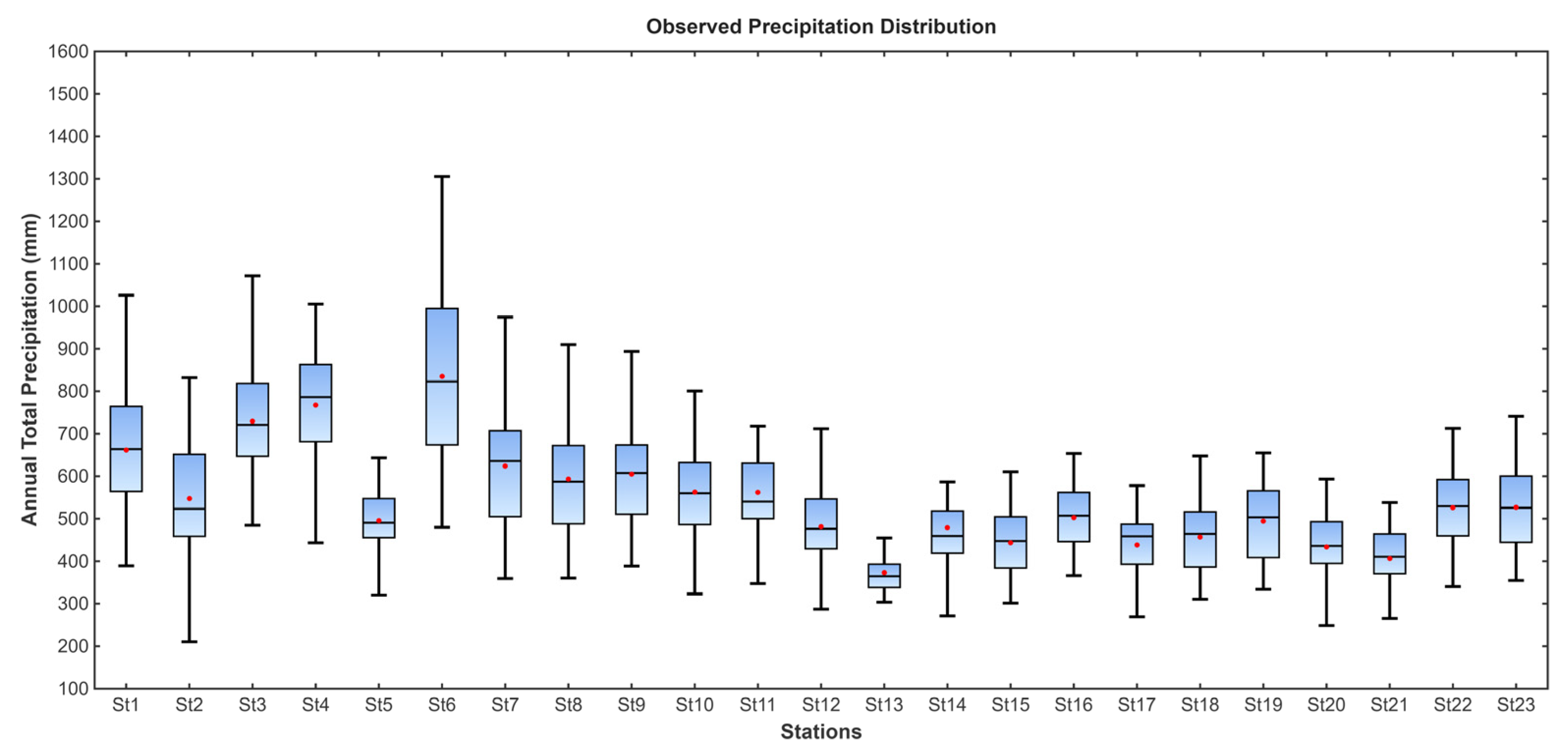 - Historical precipitation observations from meteorological stations (1980–2014);