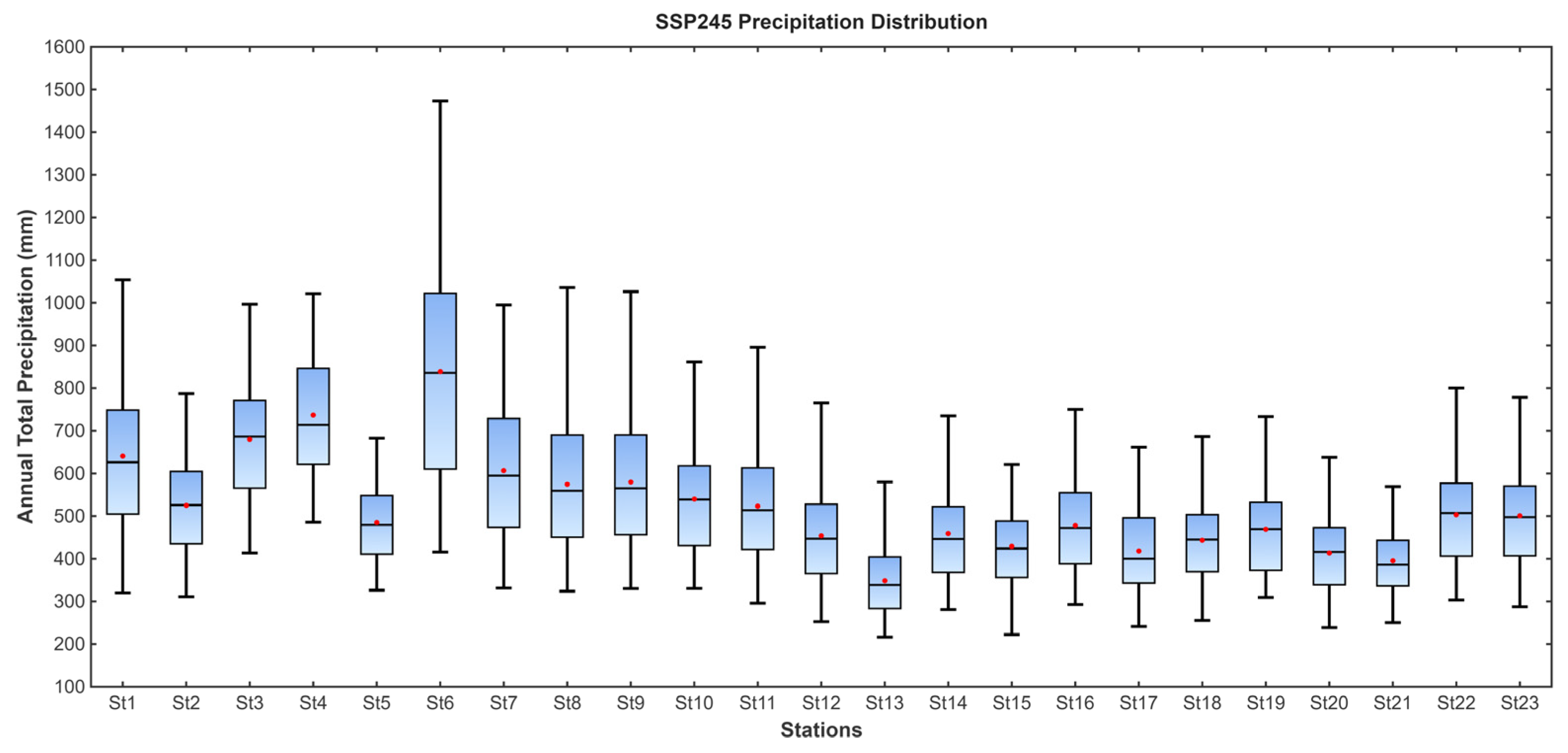 | Station 11 | Nazilli | 562.0 | 532.3 | 518.9 | 517.3 | −29.7 | −43.2 | −44.7 | −5.3 | −7.7 | −8.0 |
