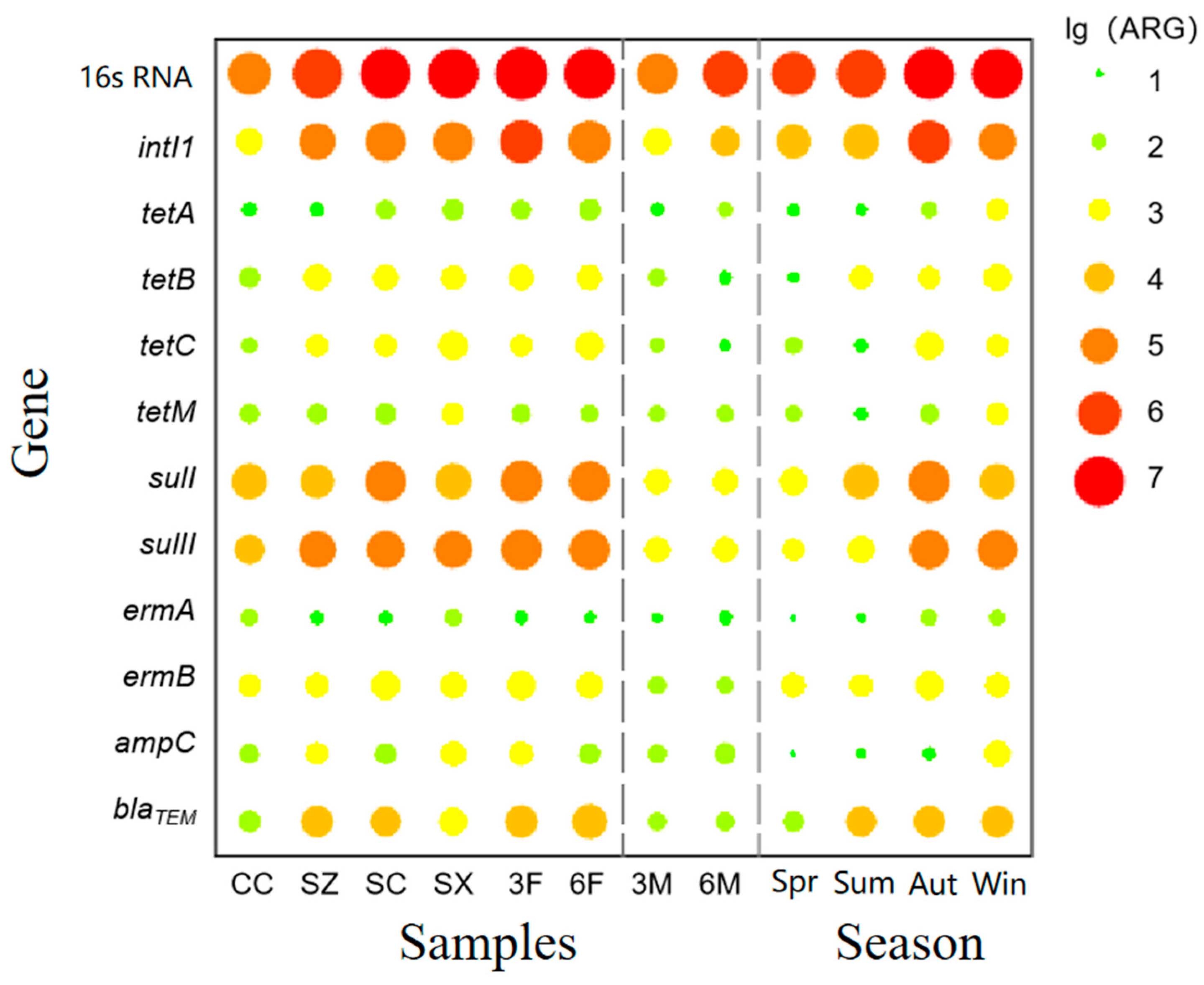 2.2.2. Quantification of Antibiotic Resistance Genes