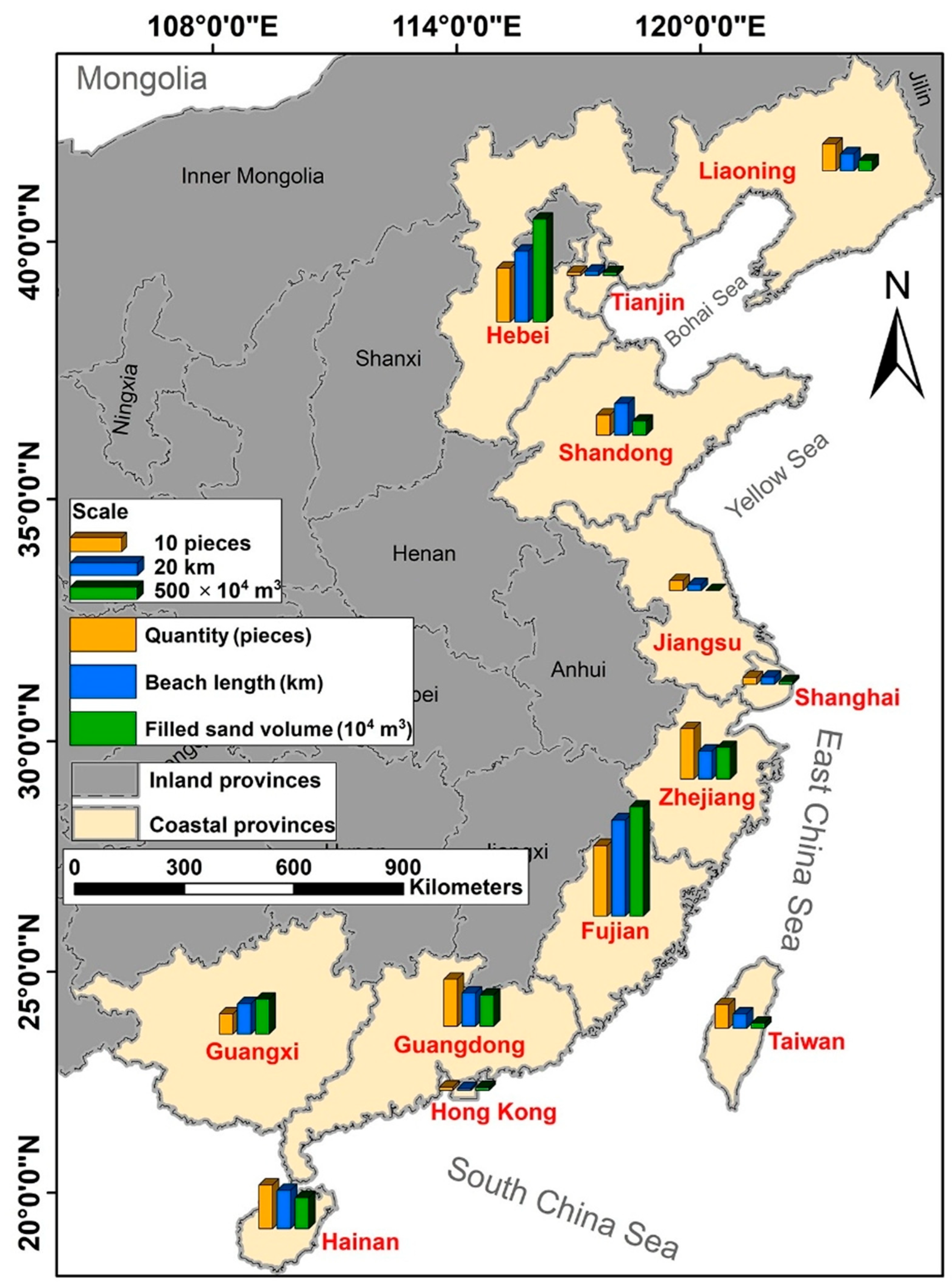 - Cai, F.; Liu, G. Beach nourishment development and technological innovations in China: An overview. J. Appl. Oceanogr. 2019, 38, 452–463. [Google Scholar]