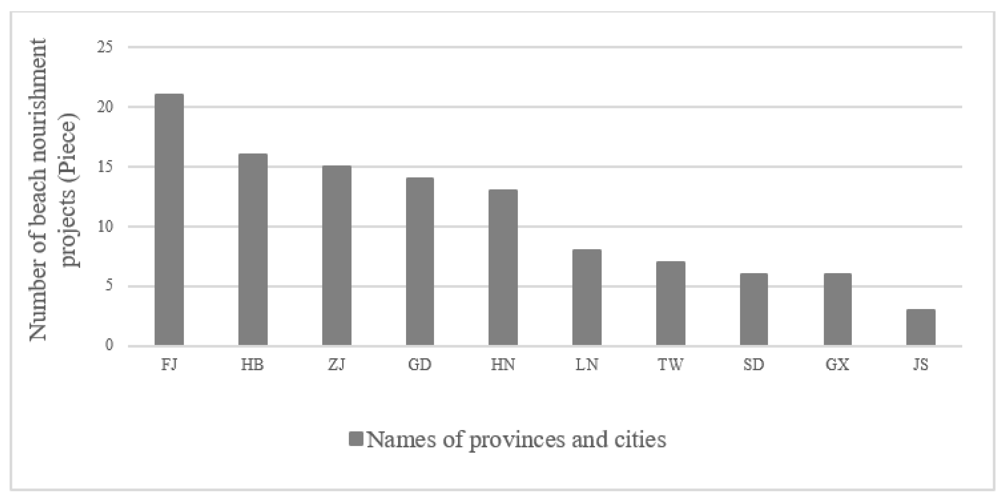3.1.2. The Development of Beach Nourishment in China