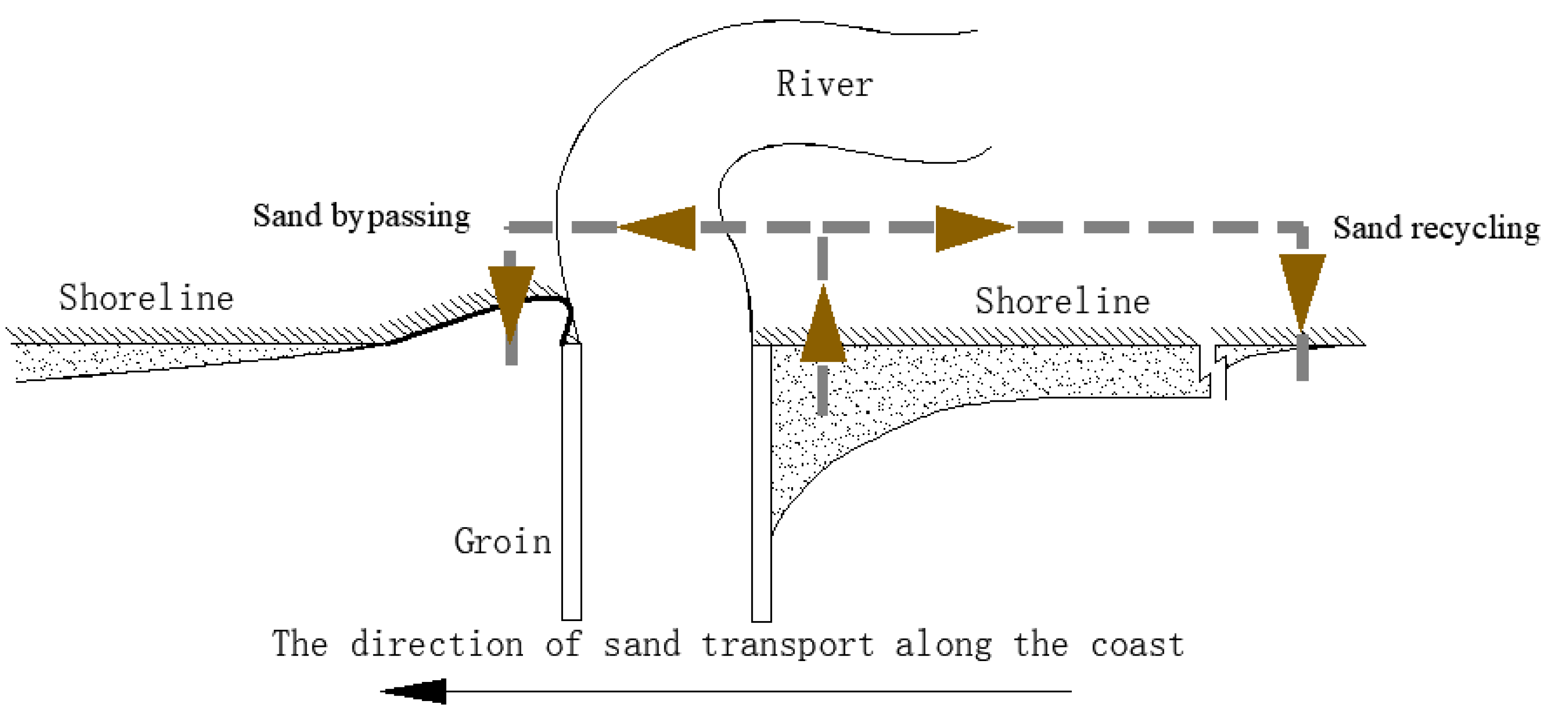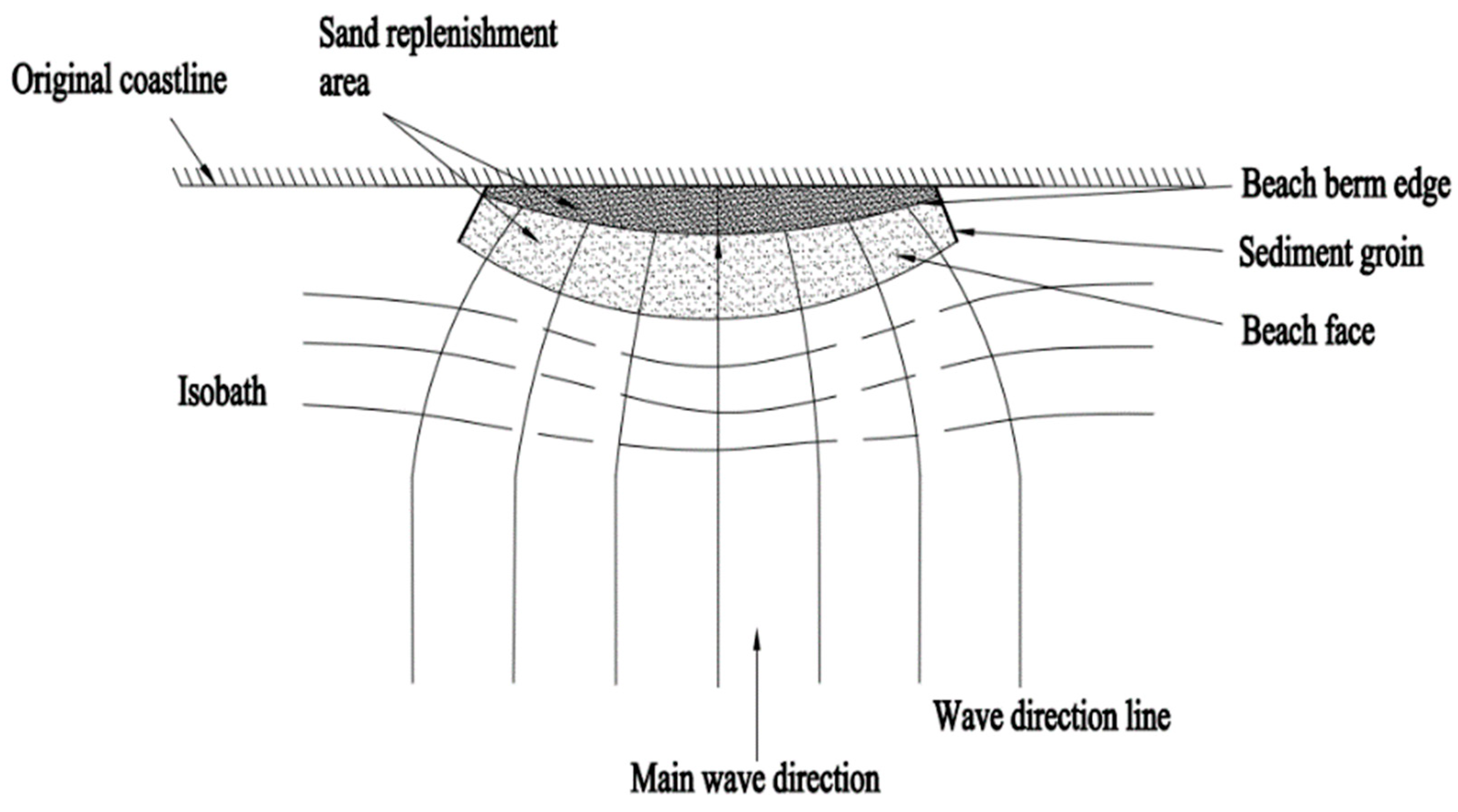 - Zhu, J.; Cai, F.; Liu, J.; Liu, G.; Qi, H.; Lei, G.; Zheng, J.; Cao, H. Application of groin system in beach nourishment. Ocean Eng. 2021, 39, 152–165. [Google Scholar] [CrossRef]