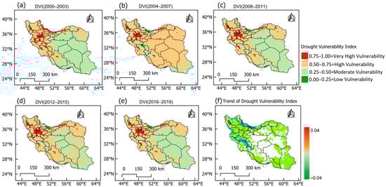 The increasing trend of drought vulnerability in approximately 46% of the country’s territory, particularly in the western and central regions, signifies the fragility of economic and social frameworks and the reliance of arid regions with constrained water resources on the agricultural sector. This observation is consistent with the findings of previous studies, which emphasized the absence of coordination between the agricultural economy and climate variations [9,57]. The DVI in regions such as Qom and Semnan provinces and Lake Urmia demonstrates the correlation between unsustainable water management and enhanced evaporation and transpiration resulting from climate change, consequently leading to increased vulnerability [26,30]. The substantial inefficiency in Iran’s agricultural sector, which uses more than 92% of the nation’s water, is a major contributing factor [62]. The salinity of groundwater recharge can be considerably elevated by irrigated agriculture, particularly when return flows are high and irrigation efficiency is low [63]. This, in turn, has a detrimental effect on agricultural productivity and has been shown to cause long-term land degradation. The socio-economic dimensions of drought vulnerability across Iran are consequently exacerbated by factors such as limited adaptive capacity, inadequate infrastructure, and poor water resource management.