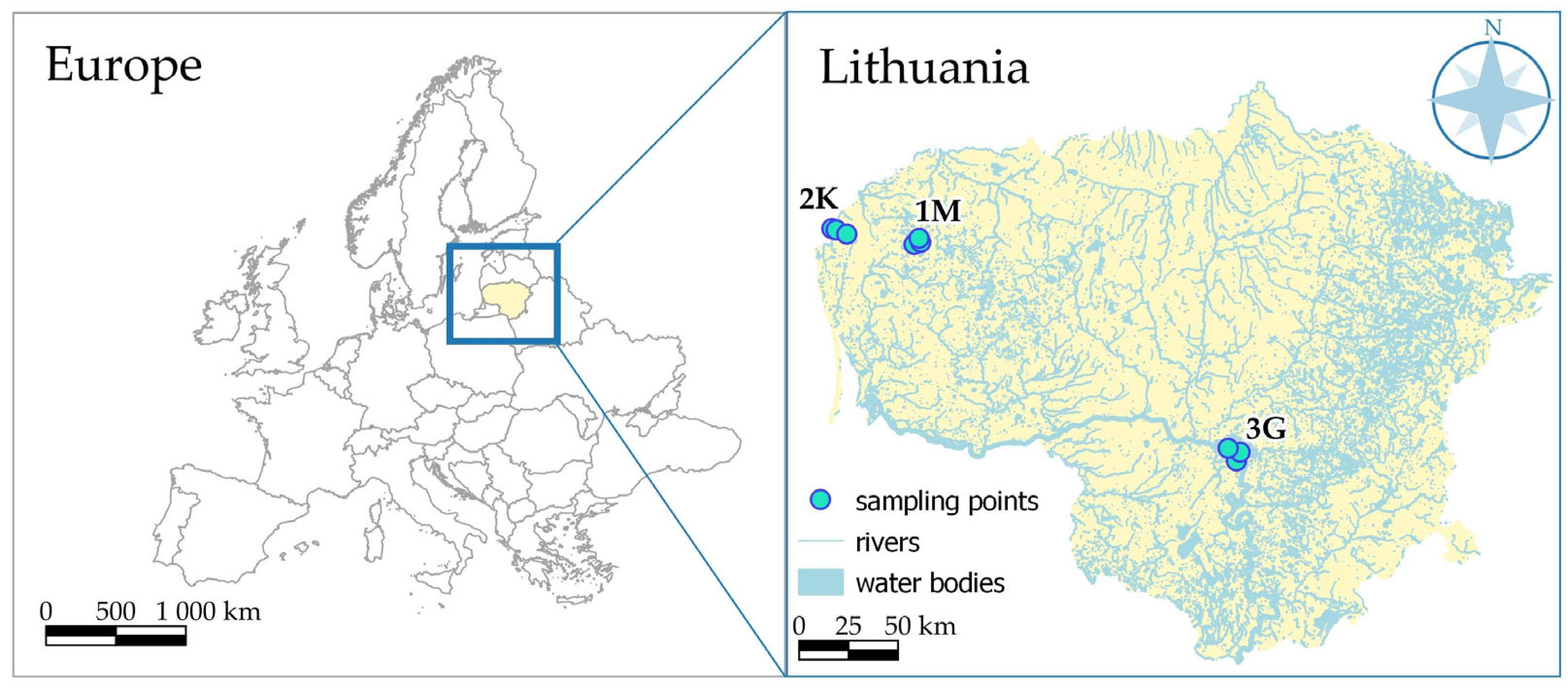- State Scientific Research Institute Nature Research Centre (NRC). Lake sediment composition and human impact in small lakes of Latvia & Lithuania—Multi-proxy investigation. Baltica 2015, 28, 99–114. Available online: https://gamtostyrimai.lt/en/leidiniai/baltica-vol-28-2-2015/ (accessed on 17 December 2025).