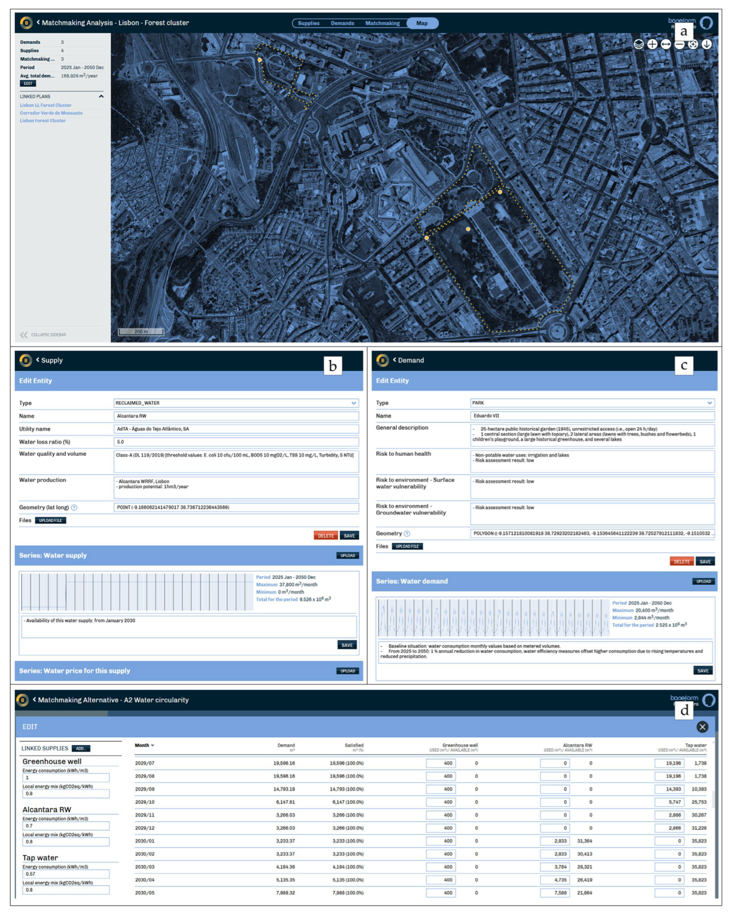 A novel framework with such features was therefore developed and is herein presented, together with the step-by-step process for its application—the smart water allocation process (SWAP) for urban non-potable uses. It was developed within the B-WaterSmart Lisbon Living Lab, bringing together the urban manager, the developers (science and industry), and the society to accelerate innovation uptake. The demand–supply matchmaking and the plan module are comprehensively described and the SWAP results and their contribution to water resilience in Lisbon are discussed.