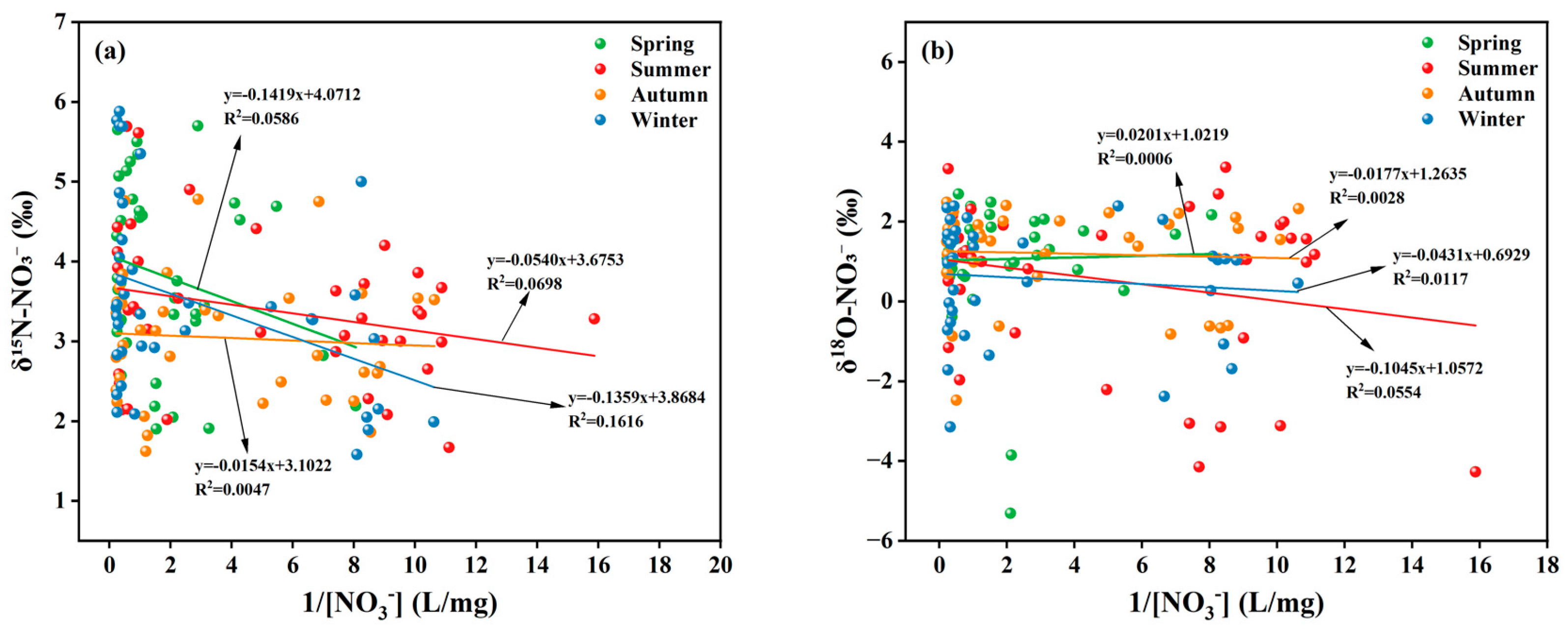 | Source | δ15N-NO3− (‰) | δ18O-NO3− (‰) | ||
