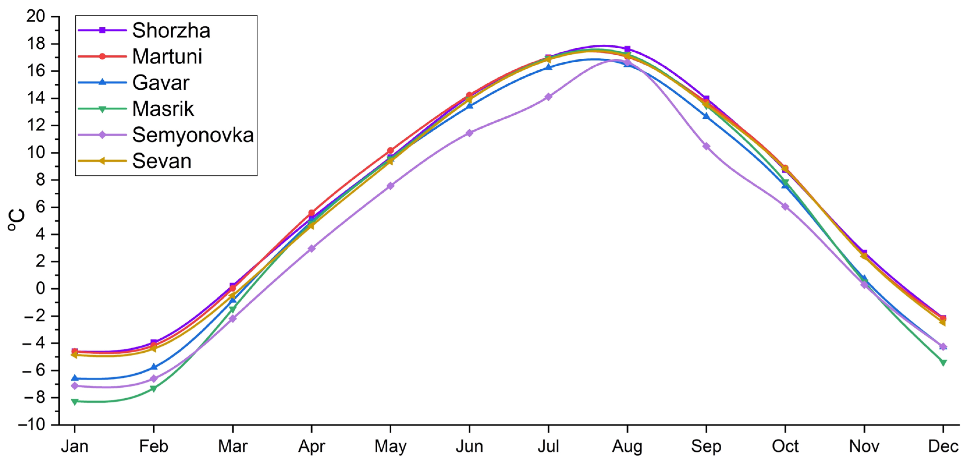 3.5. Projected Temperature Changes in the Lake Sevan Basin