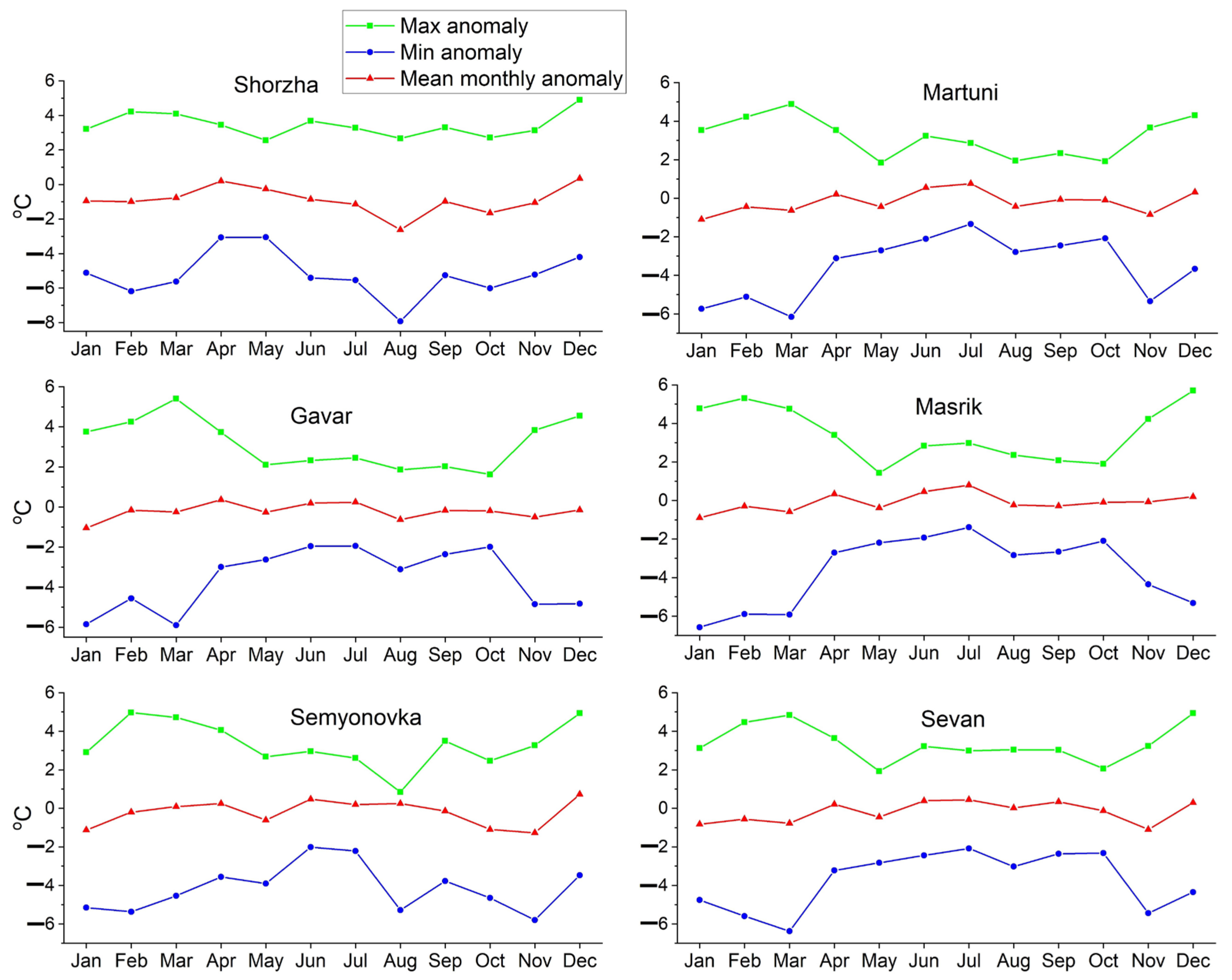 - Galstyan, H.; Sfîcă, L.; Ichim, P. Long-term variability of temperature in Armenia in the context of climate change. Int. J. Environ. Chem. Ecol. Geol. Geophys. Eng. 2016, 10, 19–25. [Google Scholar]