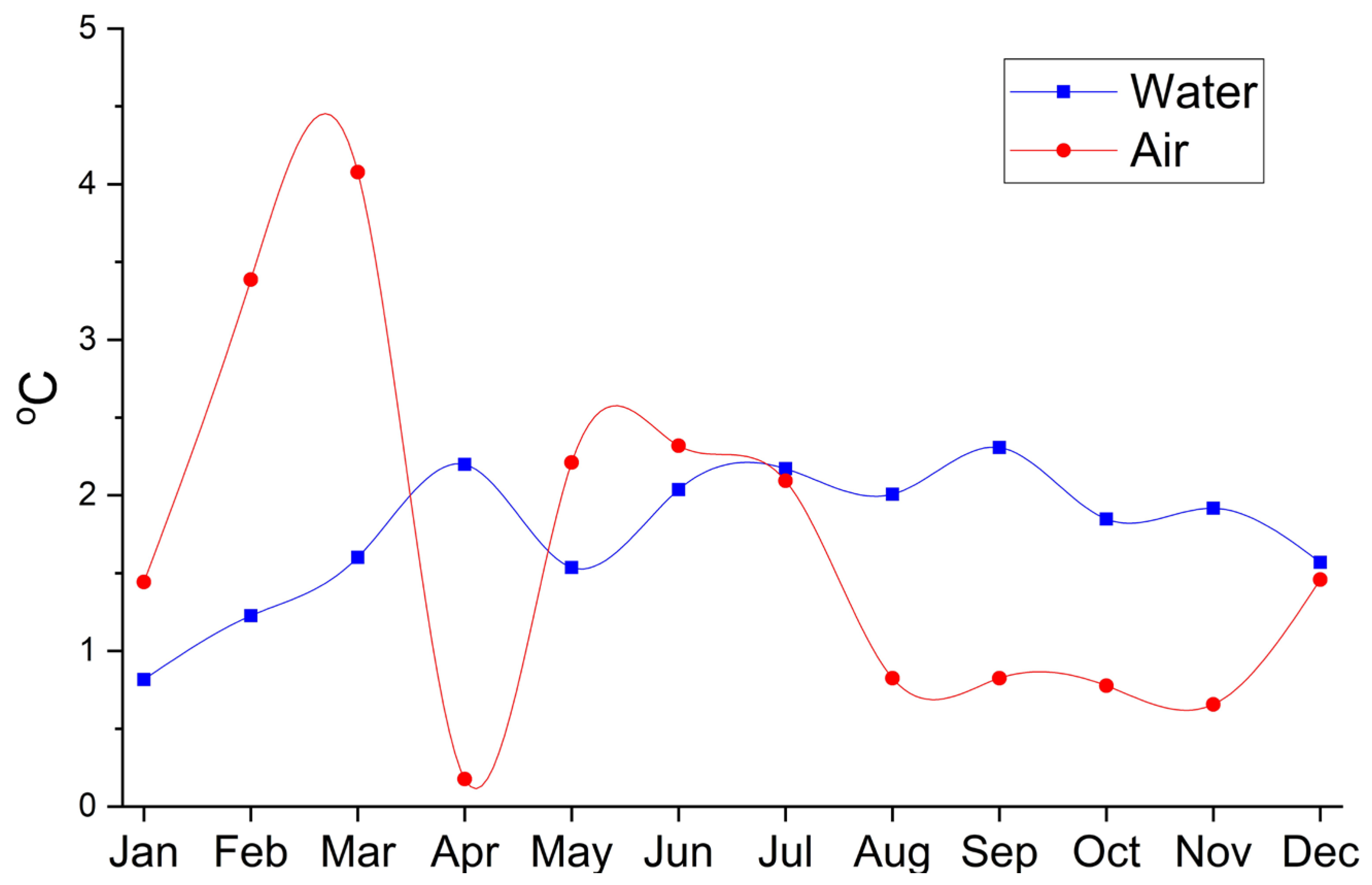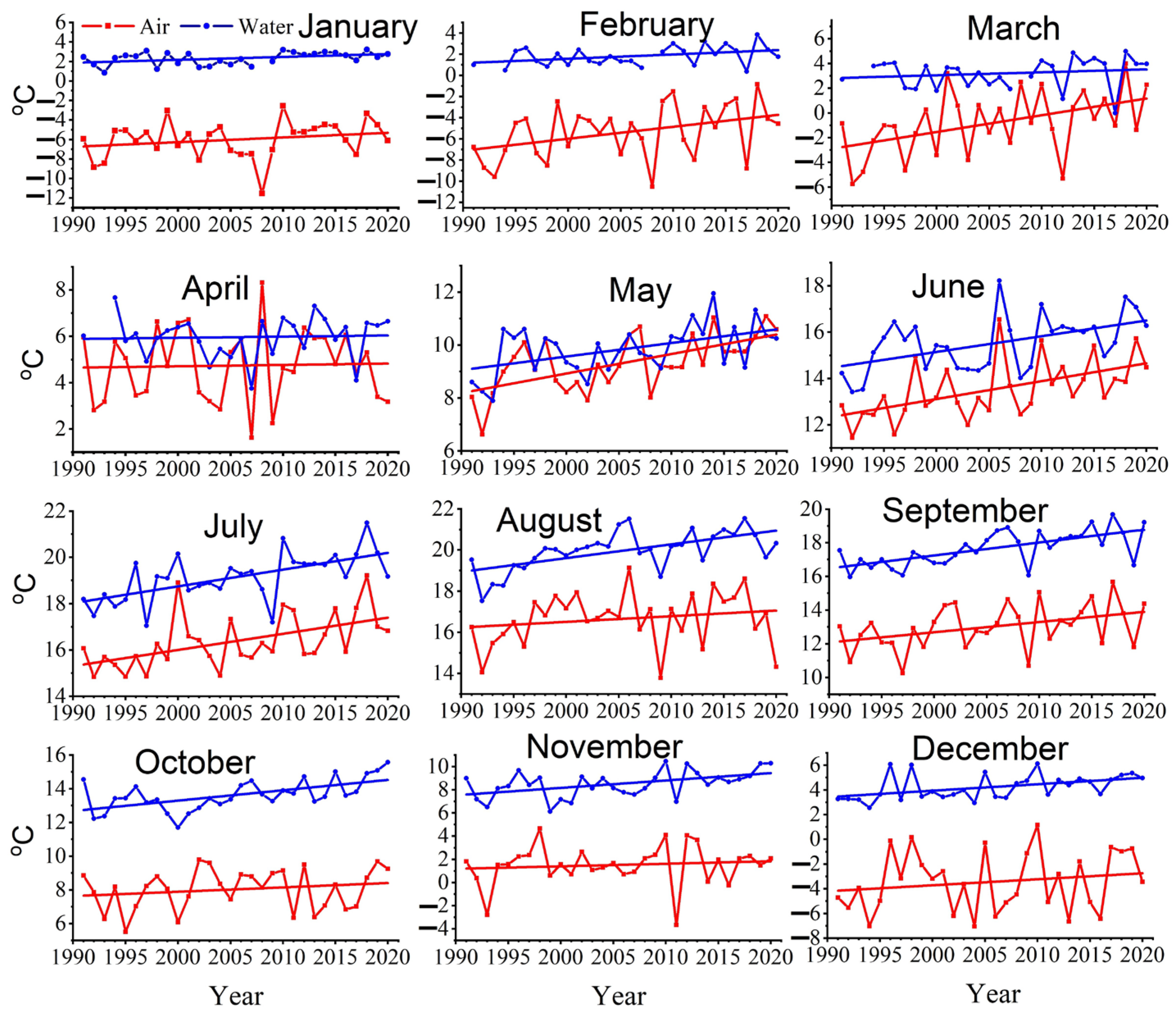 3.4. Seasonal and Interannual Patterns of Air and Water Temperature Variability