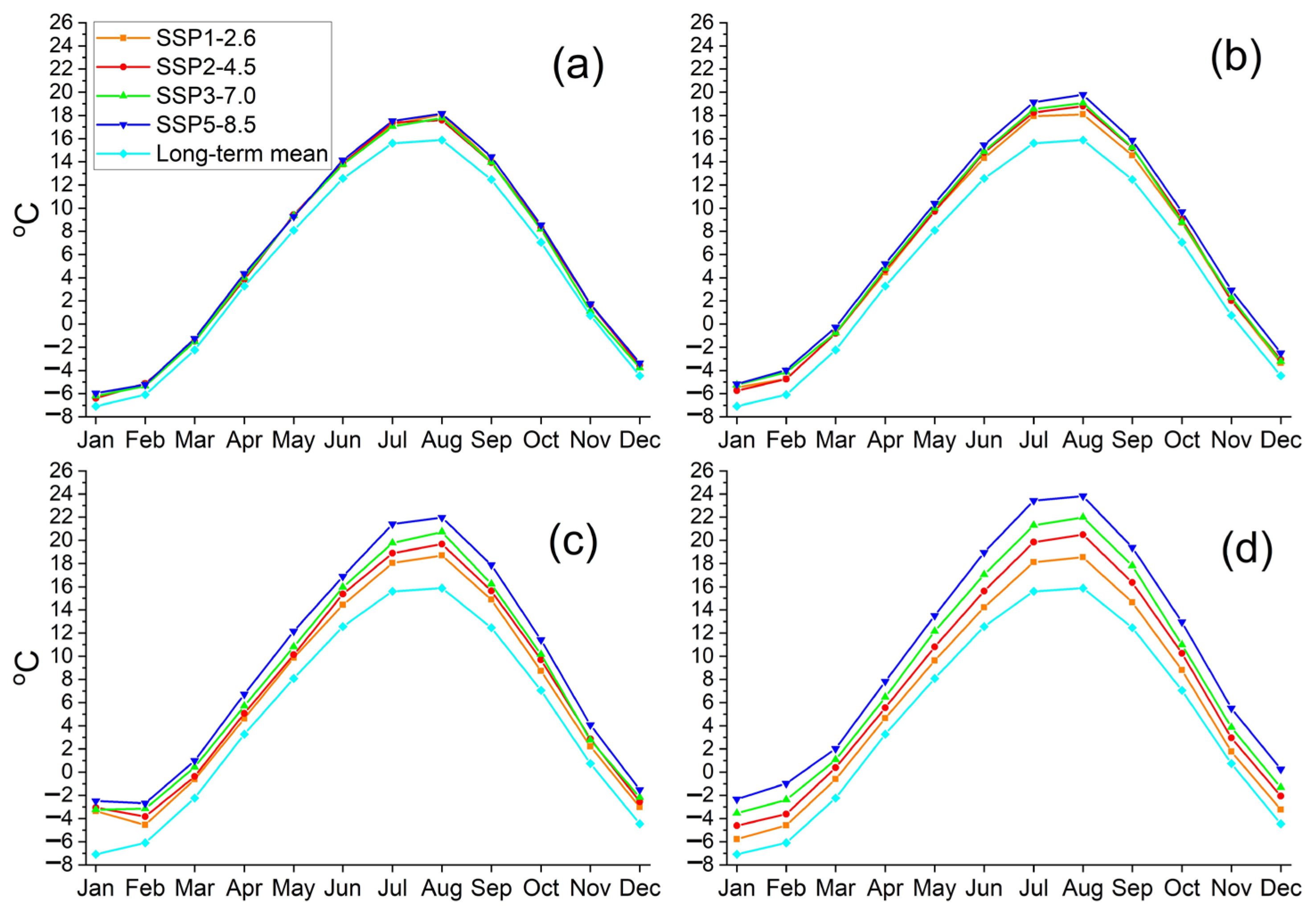 - Nazarenko, L.; Tausnev, N.; Russell, G.; Rind, D.; Miller, R.; Schmidt, G.; Bauer, S.; Kelley, M.; Ruedy, R.; Ackerman, A.; et al. Future climate change under SSP emission scenarios with GISS-E2.1. J. Adv. Model. Earth Syst. 2022, 14, e2021MS002871. [Google Scholar] [CrossRef]