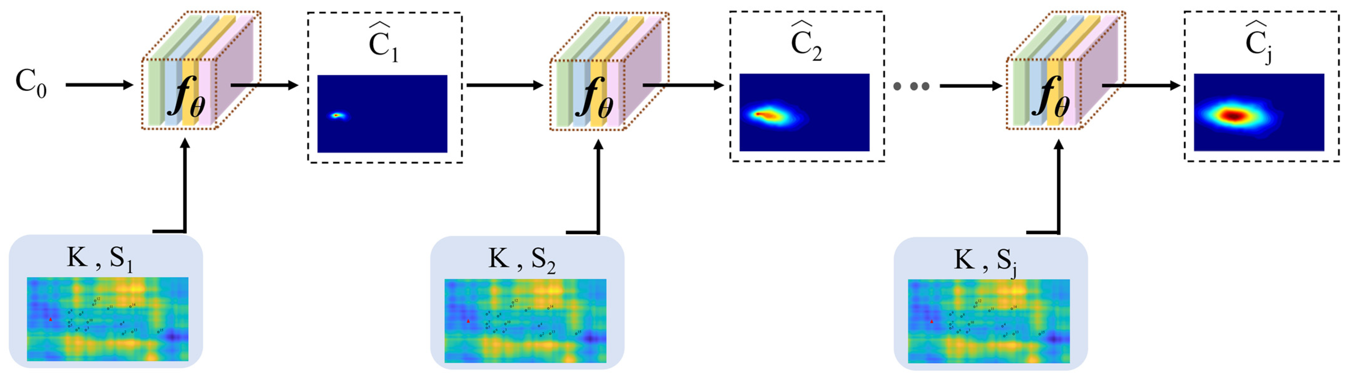Second, the solute transport model considers only advection and mechanical dispersion (Equations (4) and (5)), neglecting molecular diffusion, adsorption, decay, and biogeochemical reactions. This assumption is reasonable for conservative contaminants in the synthetic cases examined and aligns with many previous inverse modeling studies focusing on source identification and heterogeneity. However, in real-world groundwater systems, if the reactive parameters of the contaminant are known a priori from site characterization or laboratory data, the proposed surrogate modeling and inversion framework holds strong application potential: by simply incorporating the relevant reaction terms into the high-fidelity forward simulations used to generate the training dataset for the AR-DWCNN, the surrogate can learn to approximate the full reactive transport dynamics without requiring fundamental changes to the network architecture or inversion algorithm. This extension represents a direction for future research to enhance the method’s applicability to more complex reactive contaminant problems.