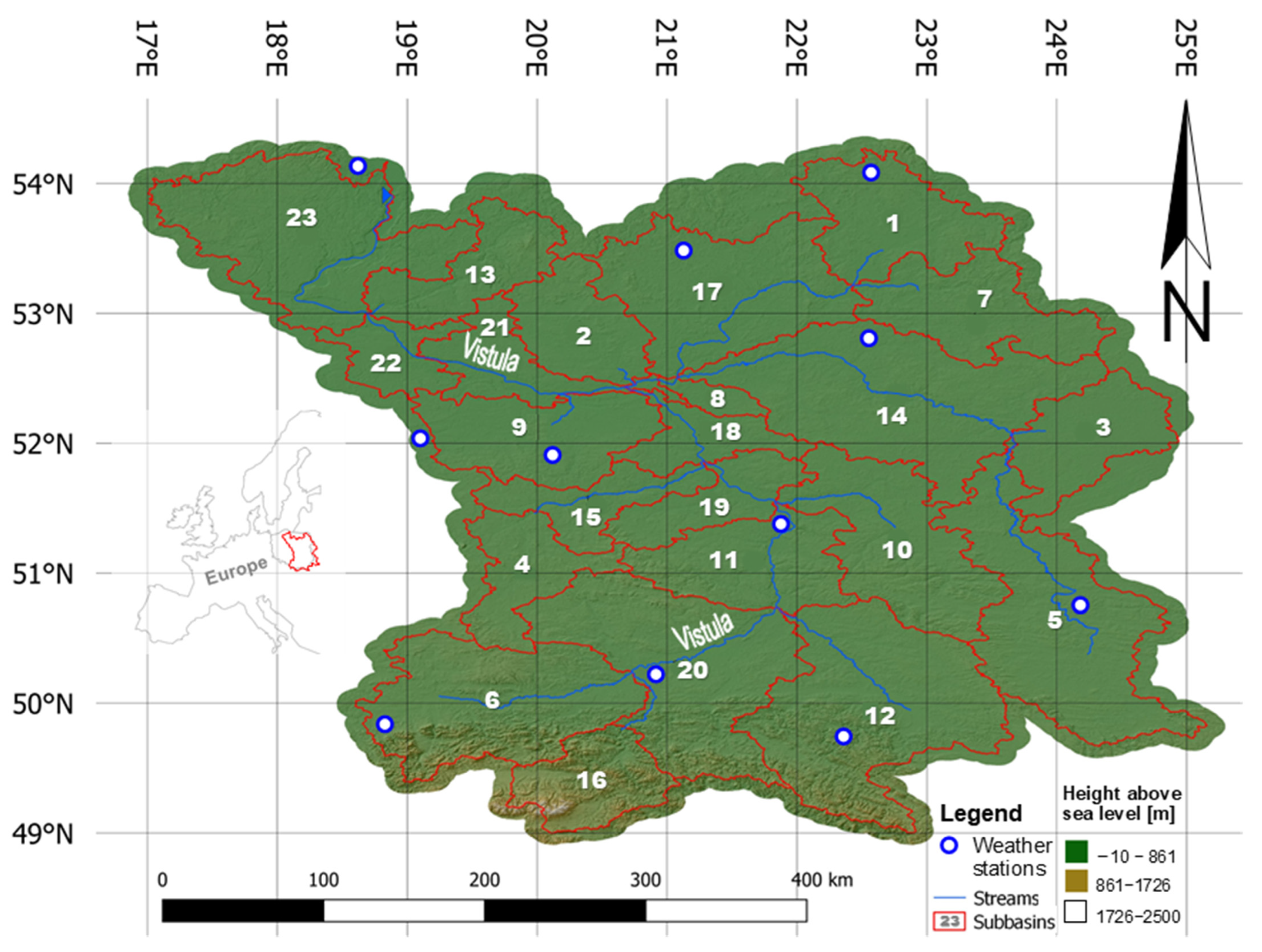 | Streamflow (for calibration) | Tczew gauge, monthly data | – | 2013–2018 | Q [m3 s−1] | Model calibration and validation |