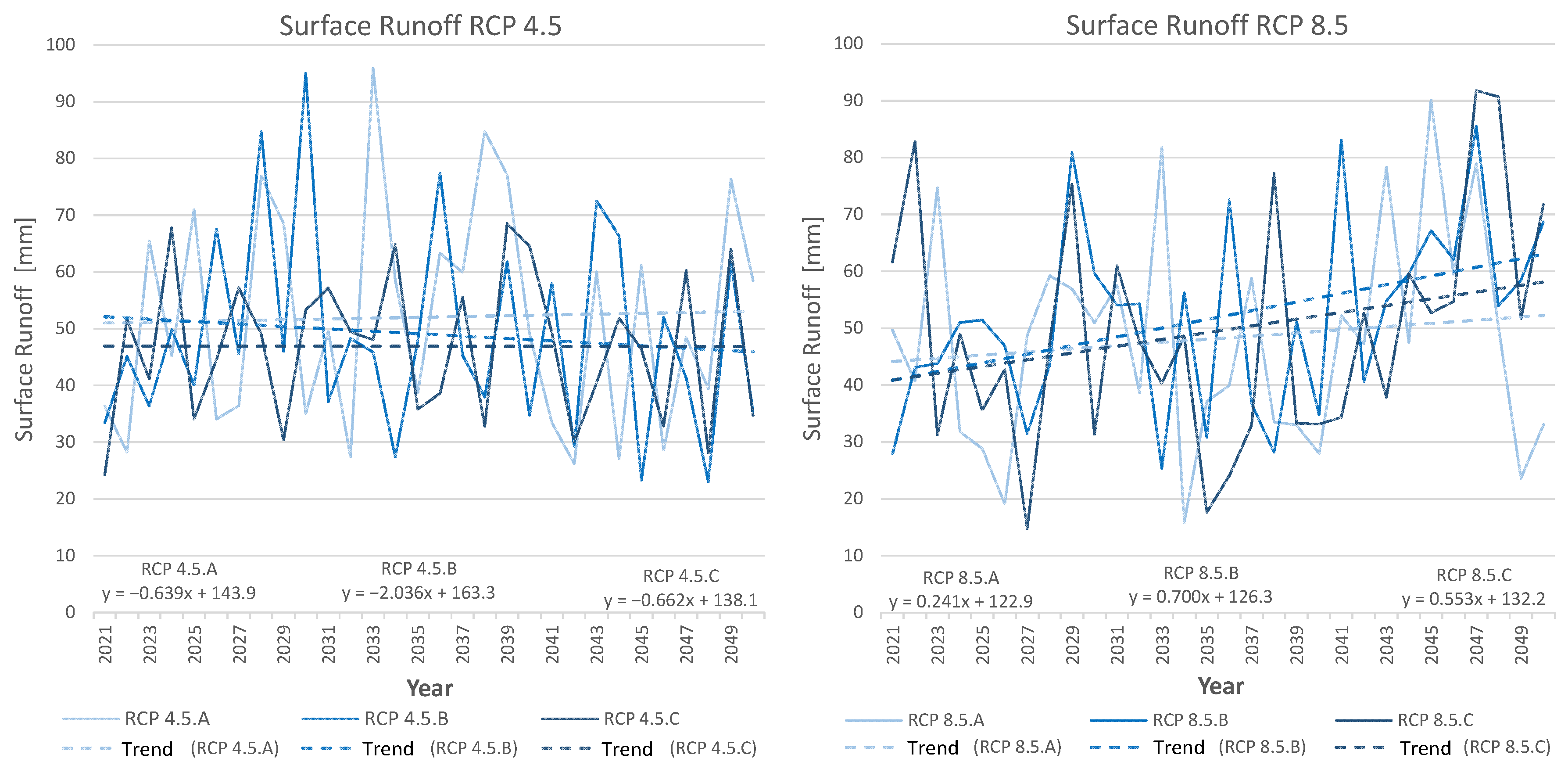 4. Simulation Results for RCP 4.5 and RCP 8.5 Scenarios: 2021–2050