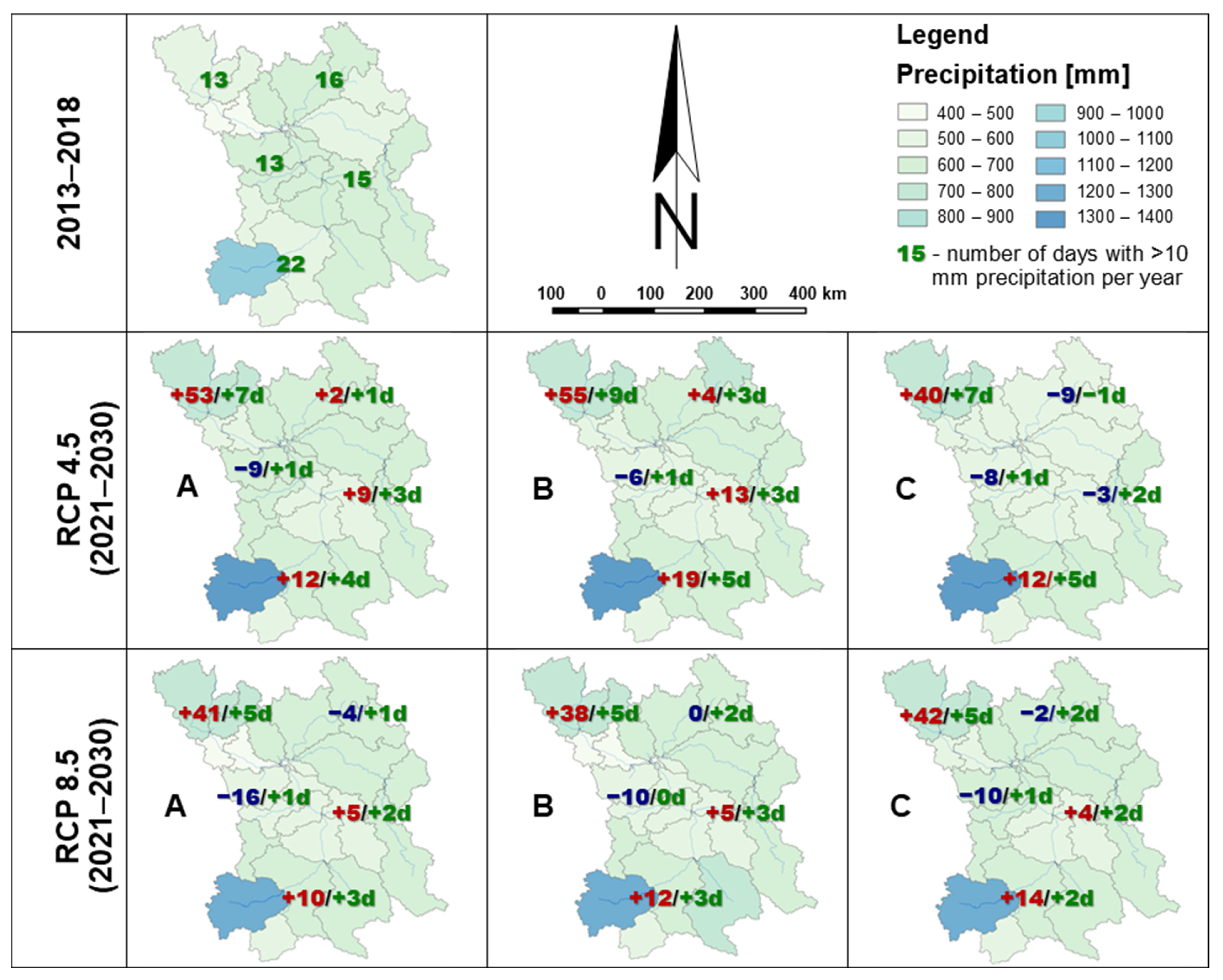 5.4.1. RCP 4.5—Short Summary (2021–2030) (Figure 4)