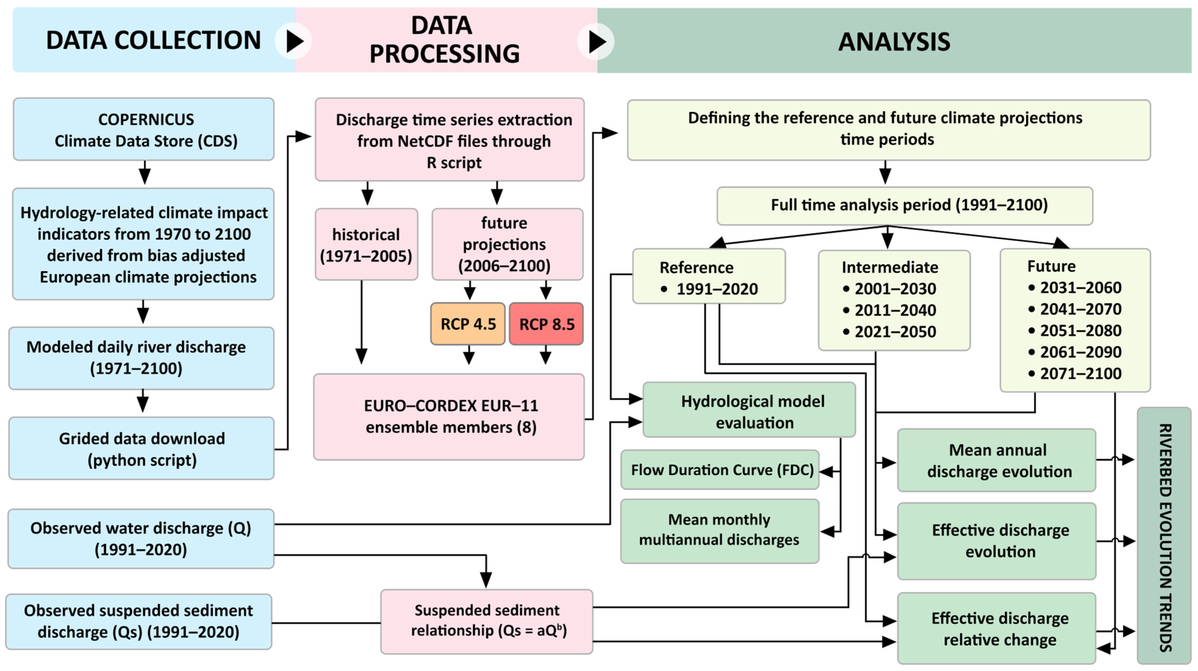 | Qe8.5 | Effective discharge computed with RCP 8.5 climate–change scenario discharges |