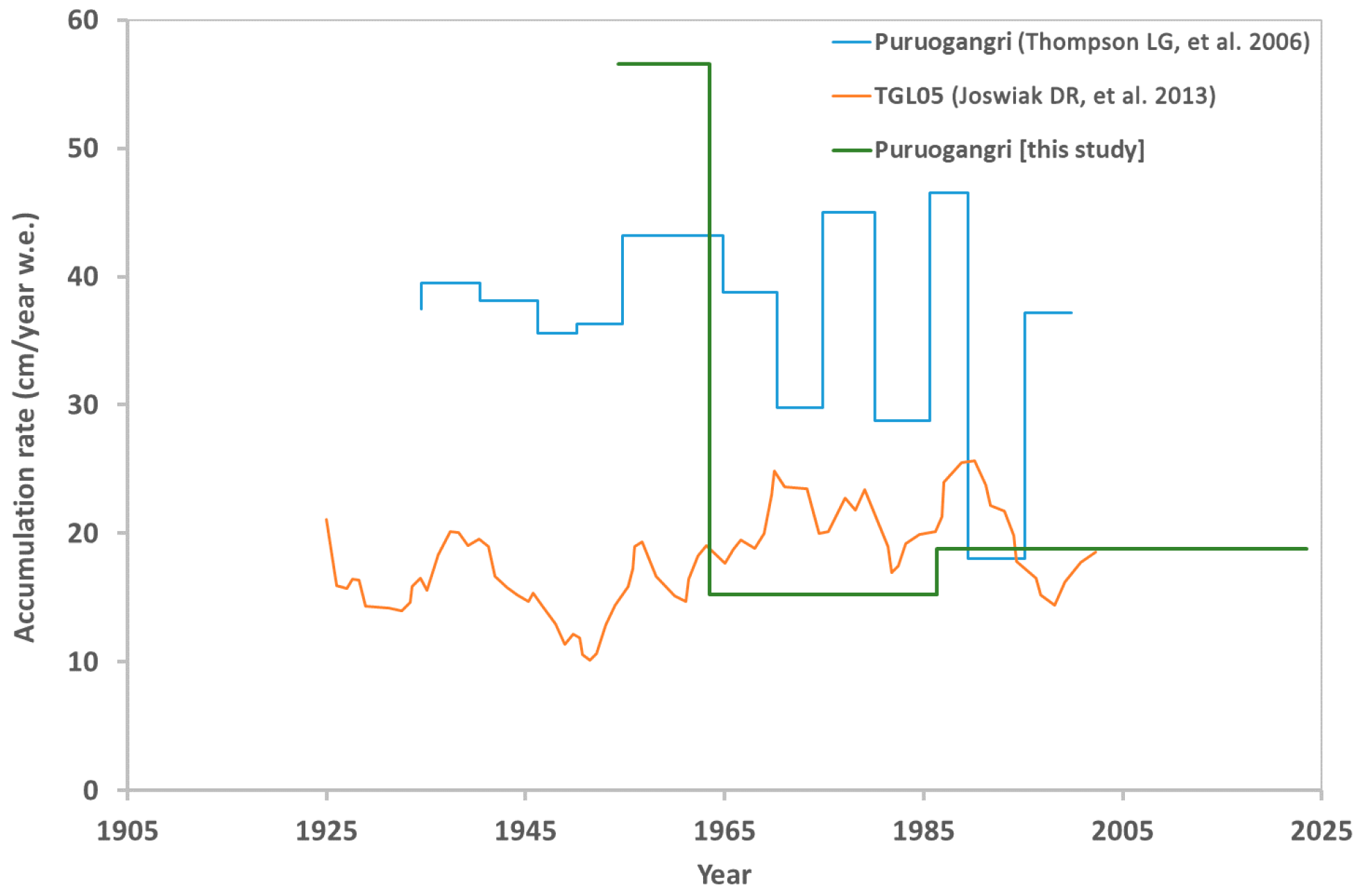 - Wang, N.; Jiang, X.; Thompson, L.G.; Davis, M.E. Accumulation Rates over the Past 500 Years Recorded in Ice Cores from the Northern and Southern Tibetan Plateau, China. Arct. Antarct. Alp. Res. 2007, 39, 671–677. [Google Scholar] [CrossRef][Green Version]