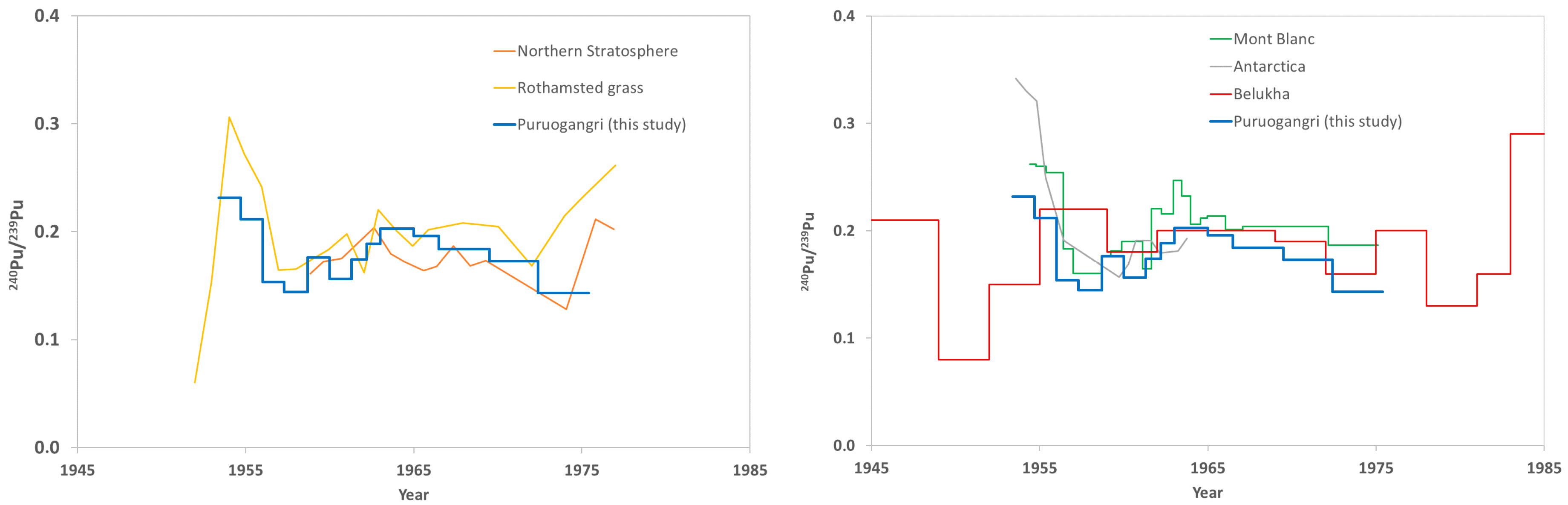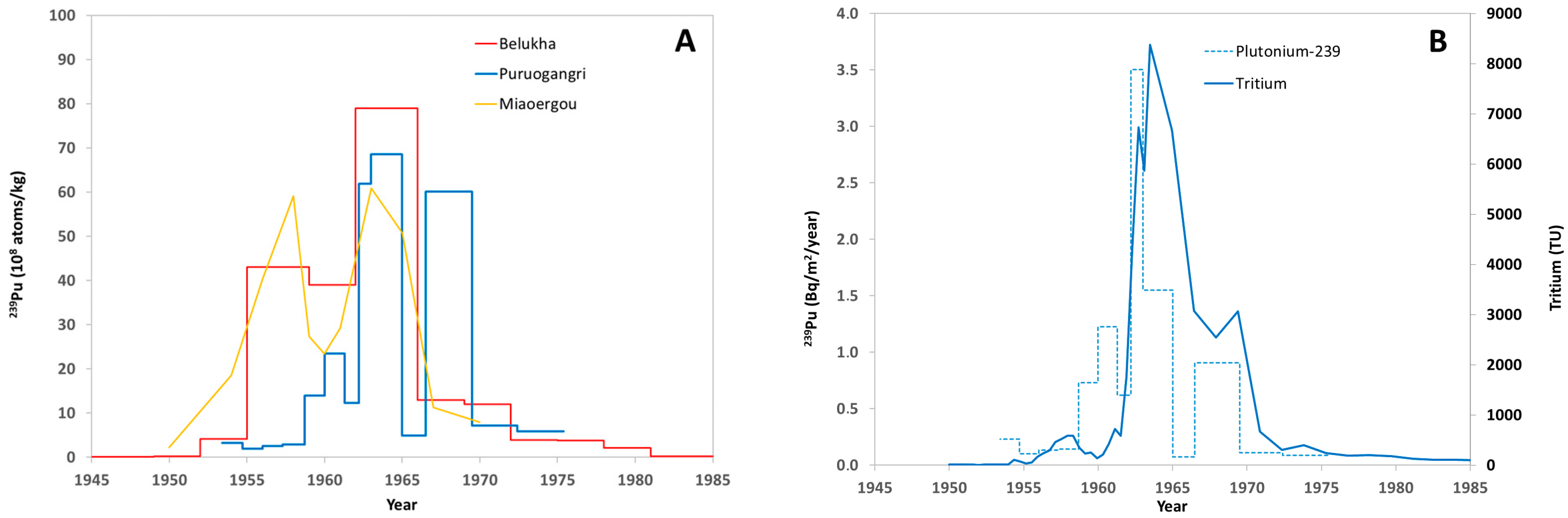 Tritium and Plutonium Time Series from the Puruogangri Ice Field, Tibetan Plateau, China