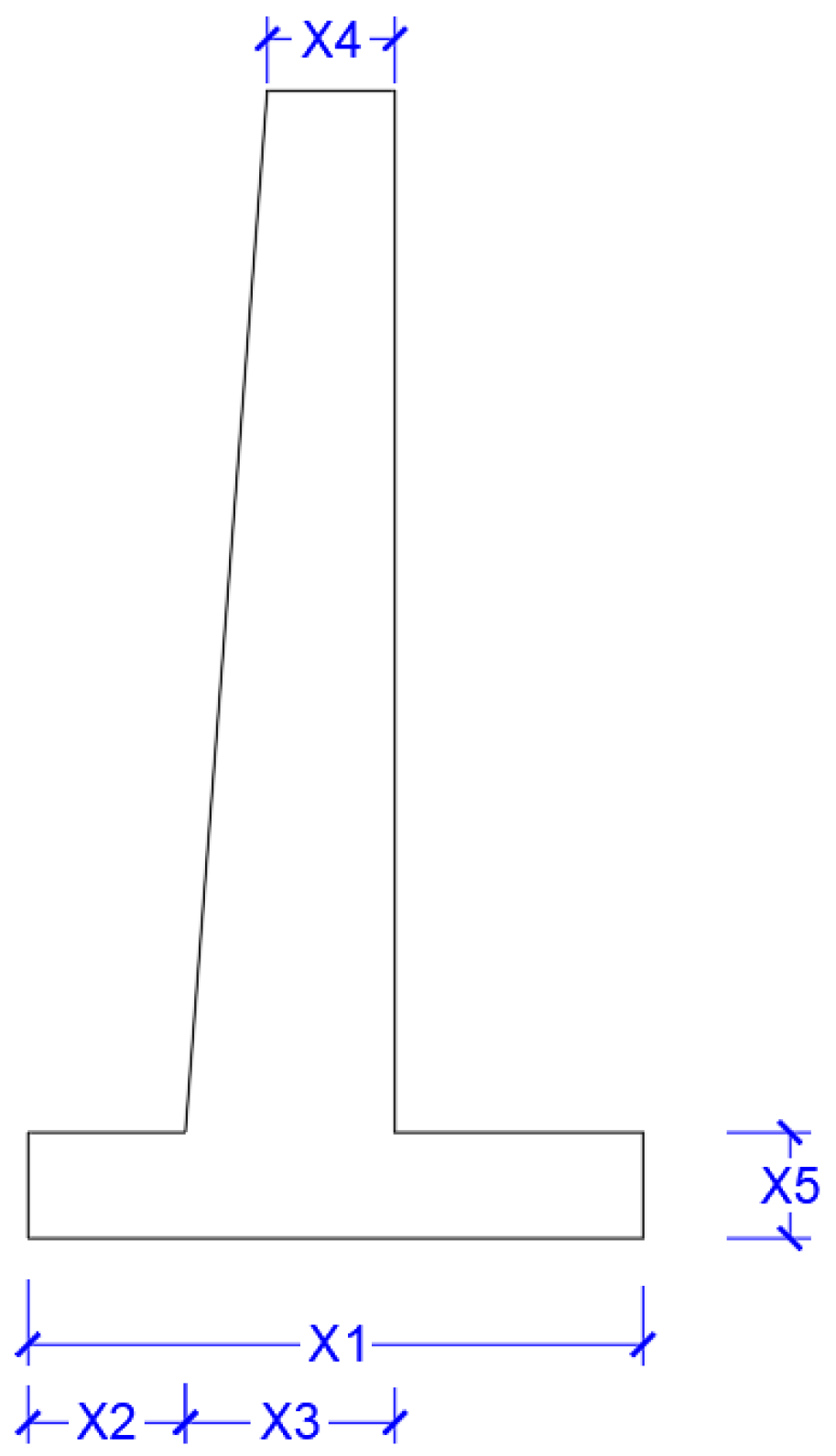 X5 (thickness of the base slab), which all pertain to the various dimensions of the wall.