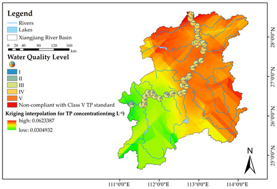Graded spatial distribution and changes in average TP concentration at each sampling point.