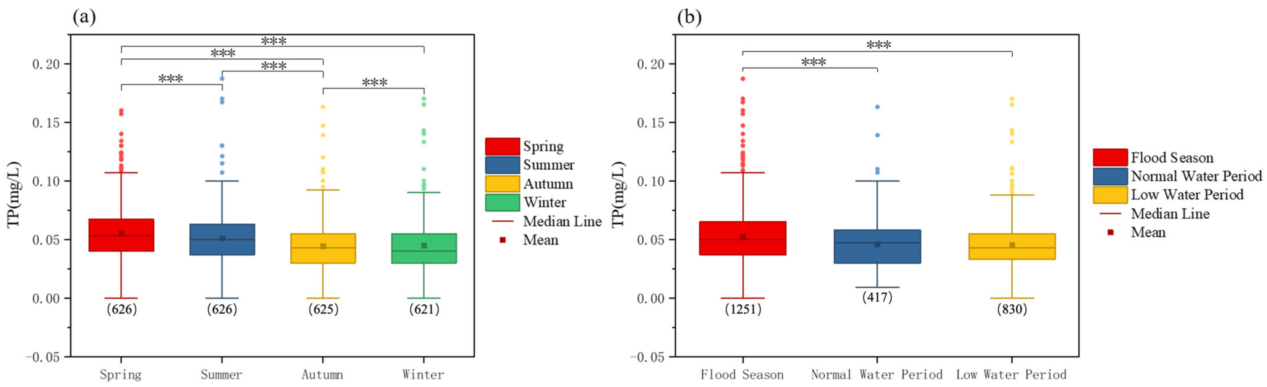- Li, J.; He, Y.; Xie, T.; Song, Z.; Bai, S.; Zhang, X.; Wang, C. Seasonal Variations and Drivers of Total Nitrogen and Phosphorus in China’s Surface Waters. Water 2025, 17, 512. [Google Scholar] [CrossRef]