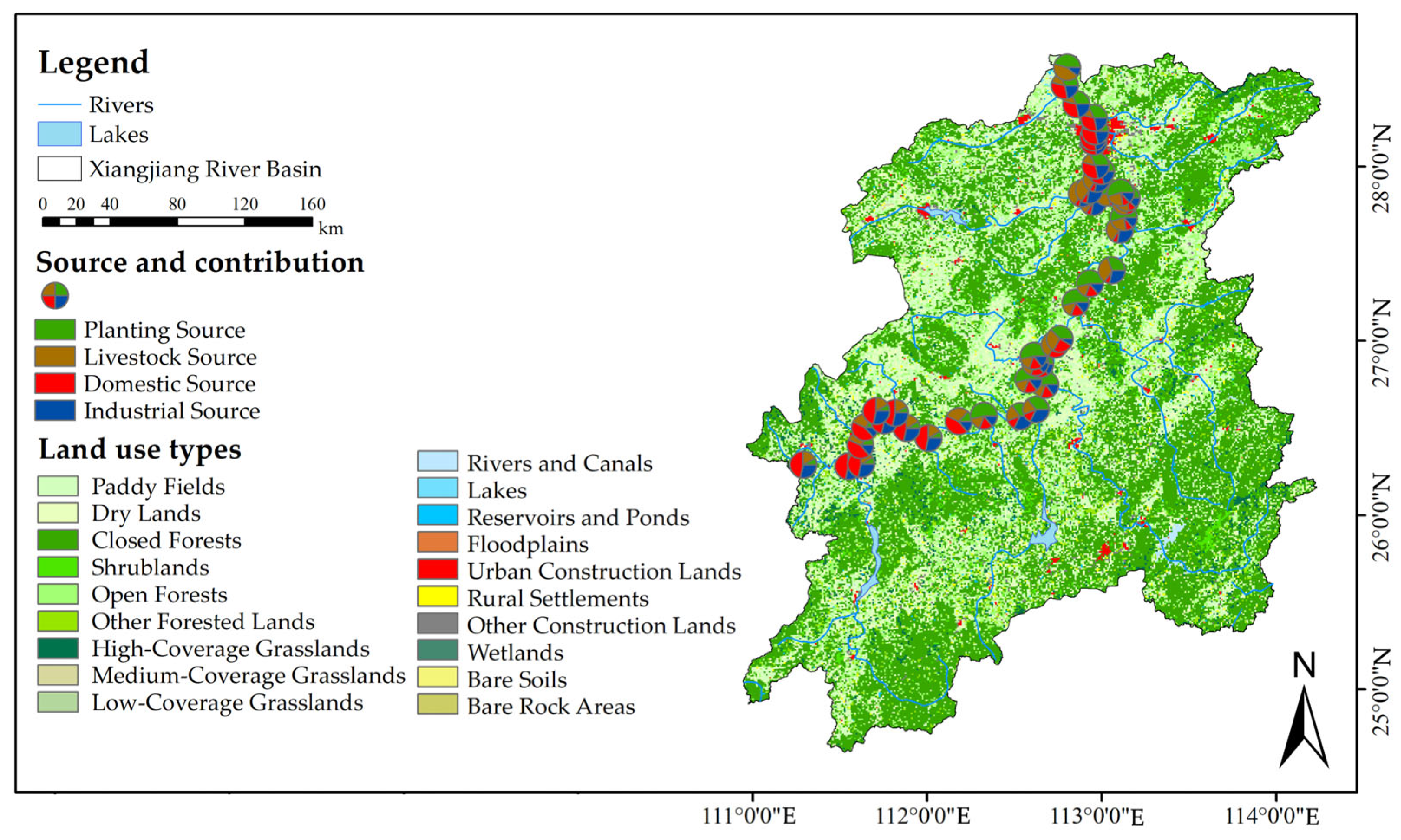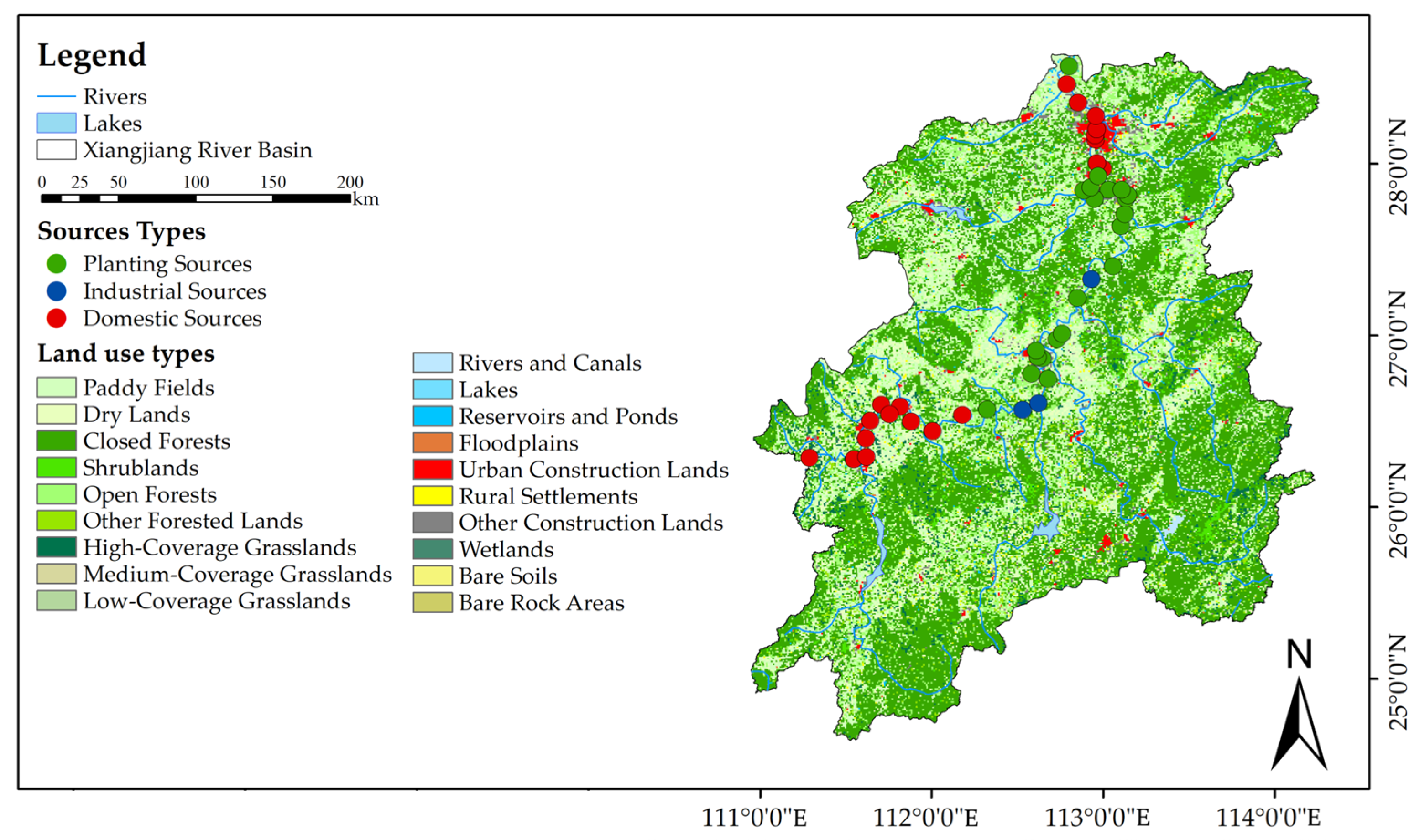 - Han, J.; Xin, Z.; Han, F.; Xu, B.; Wang, L.; Zhang, C.; Zheng, Y. Source contribution analysis of nutrient pollution in a P-rich watershed: Implications for integrated water quality management. Environ. Pollut. 2021, 279, 116885. [Google Scholar] [CrossRef] [PubMed]