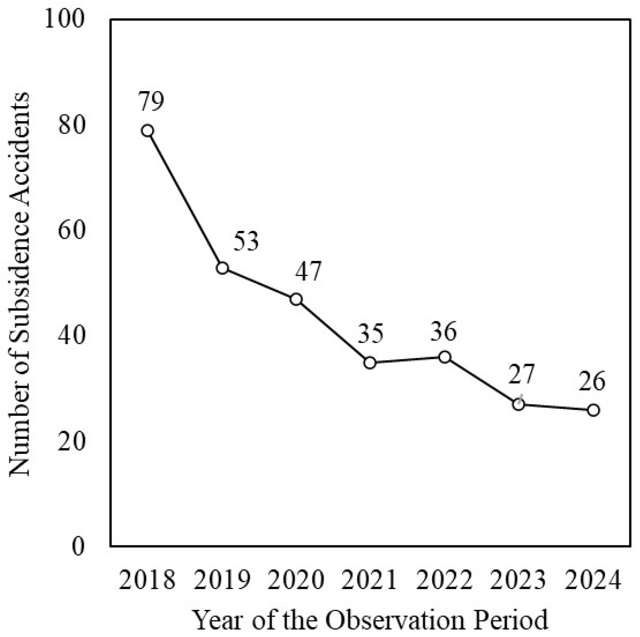 Figure 1 illustrates the annual distribution of ground subsidence incidents over the study period.