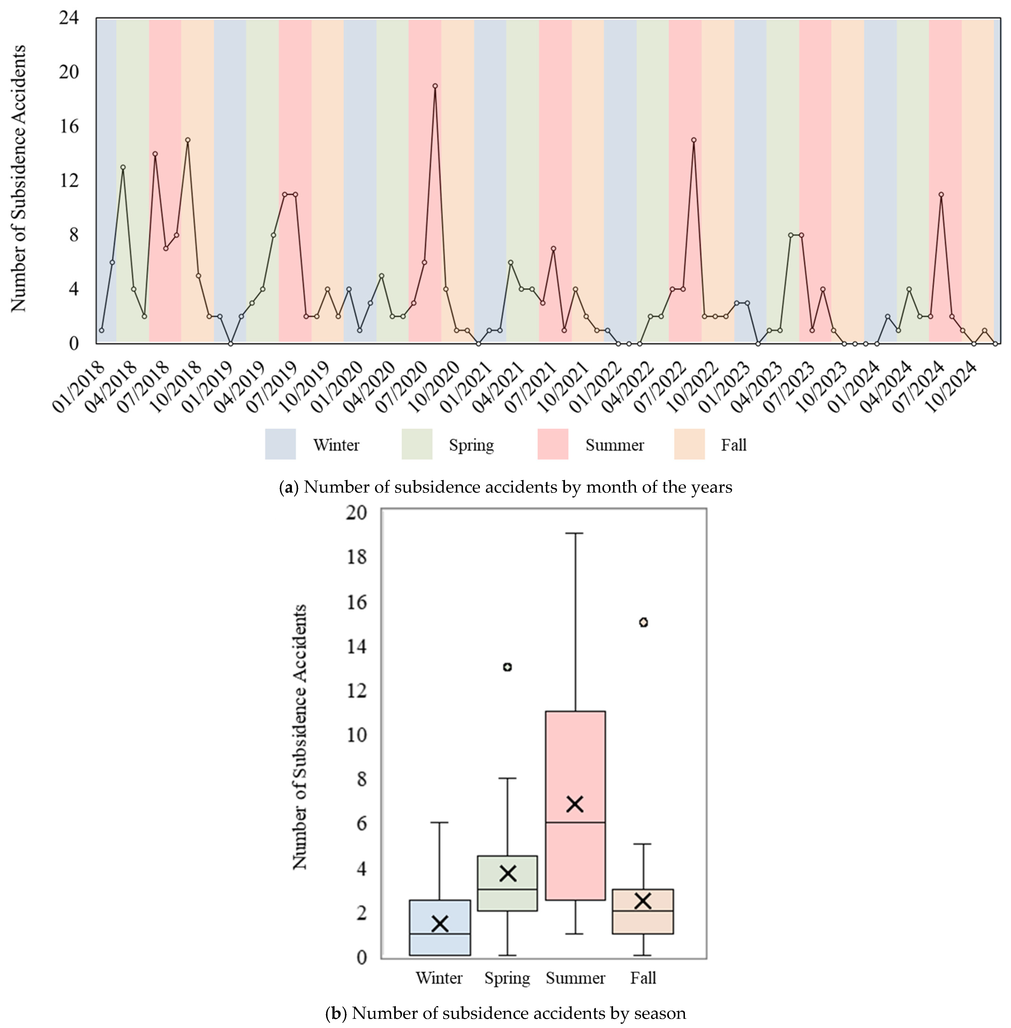 Figure 4b shows the number of subsidence accidents by season.