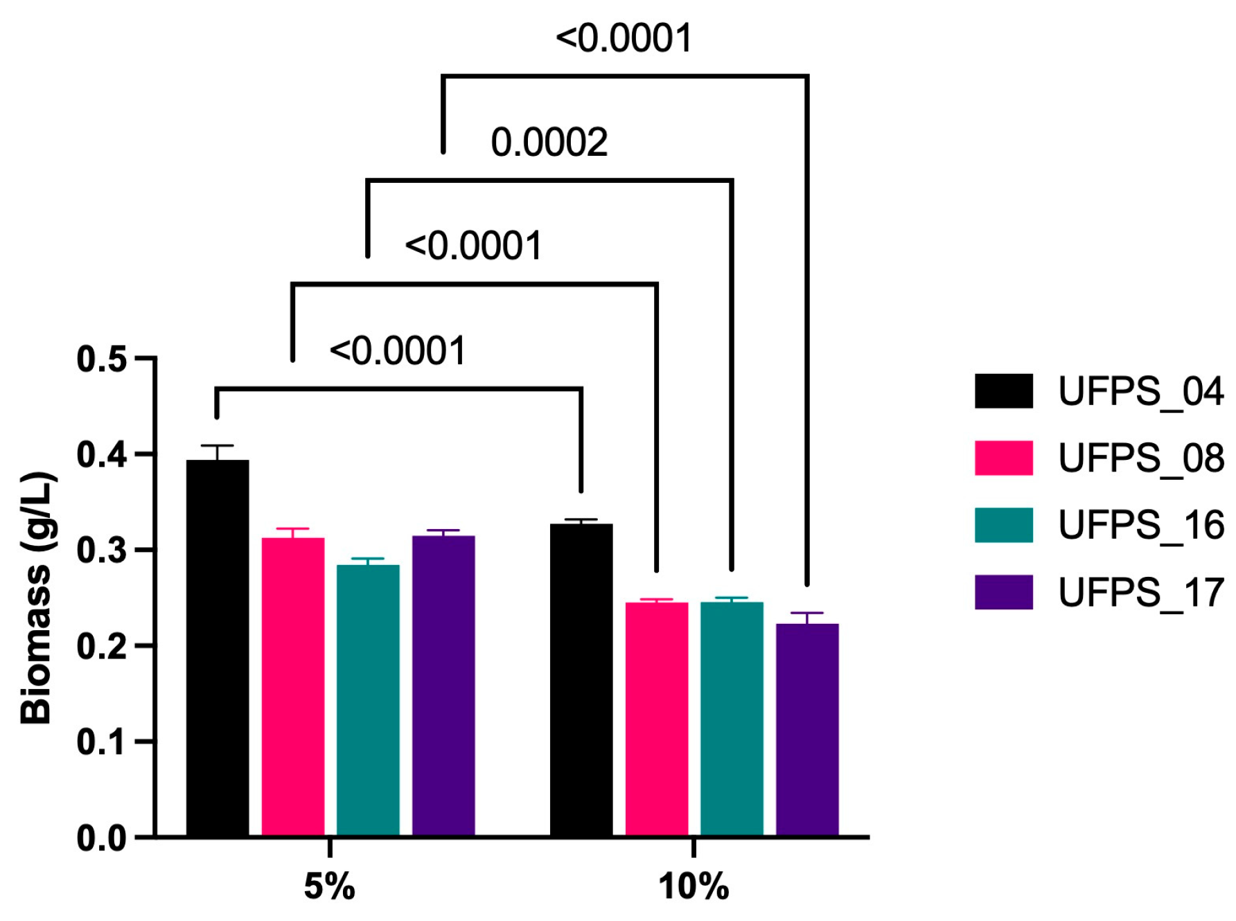 3.3. DoE and Optimization of Biomass and Metabolites Production