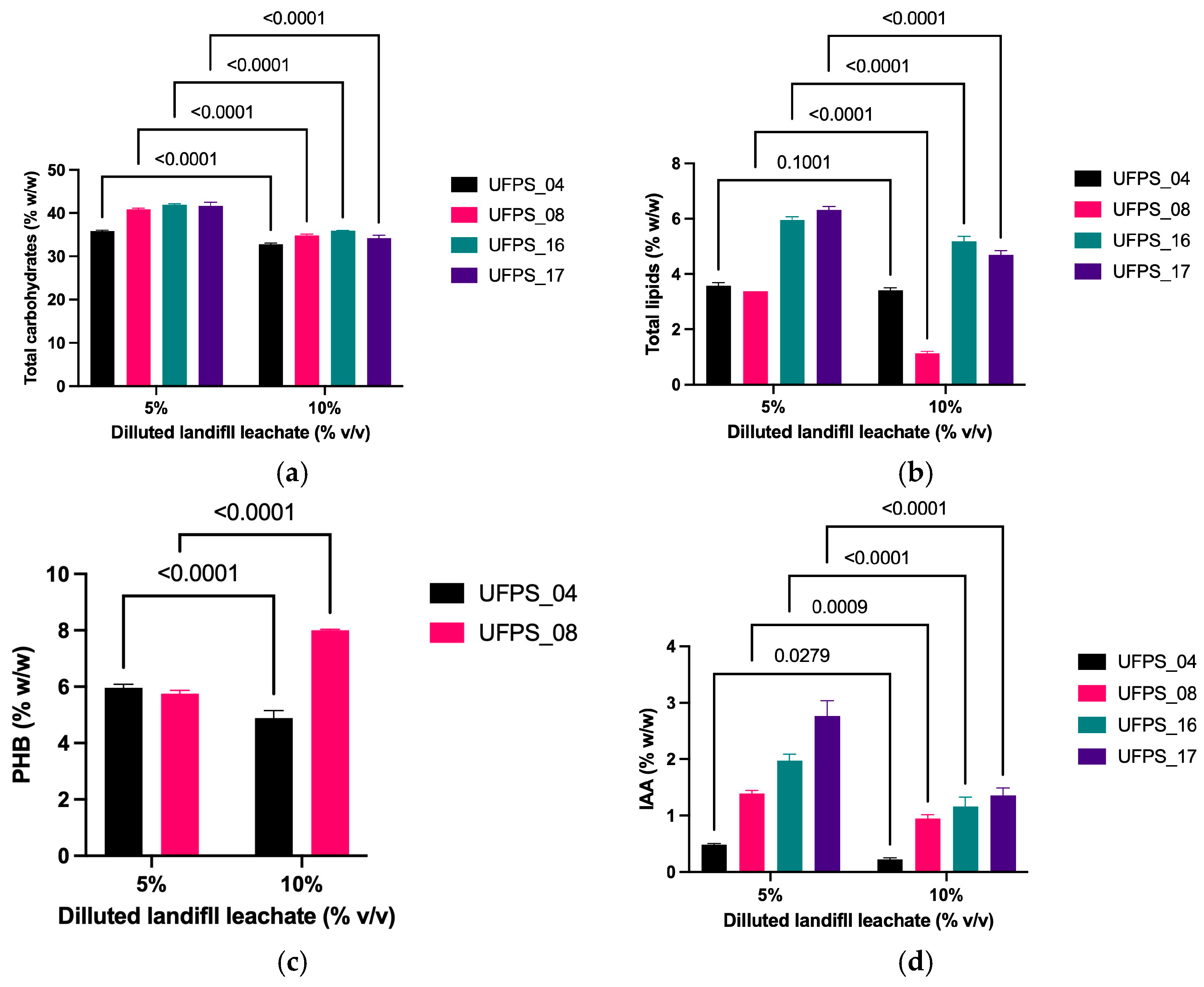 2.3. Sensitivity Analysis of the Strains to Landfill Leachate