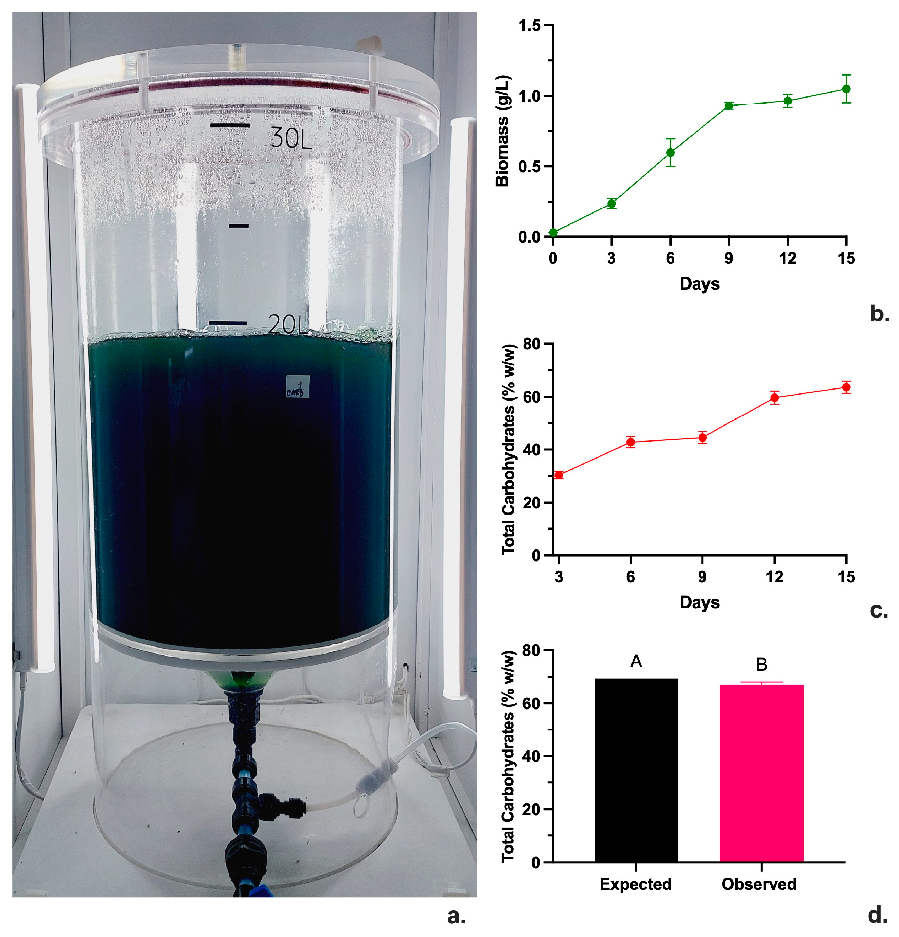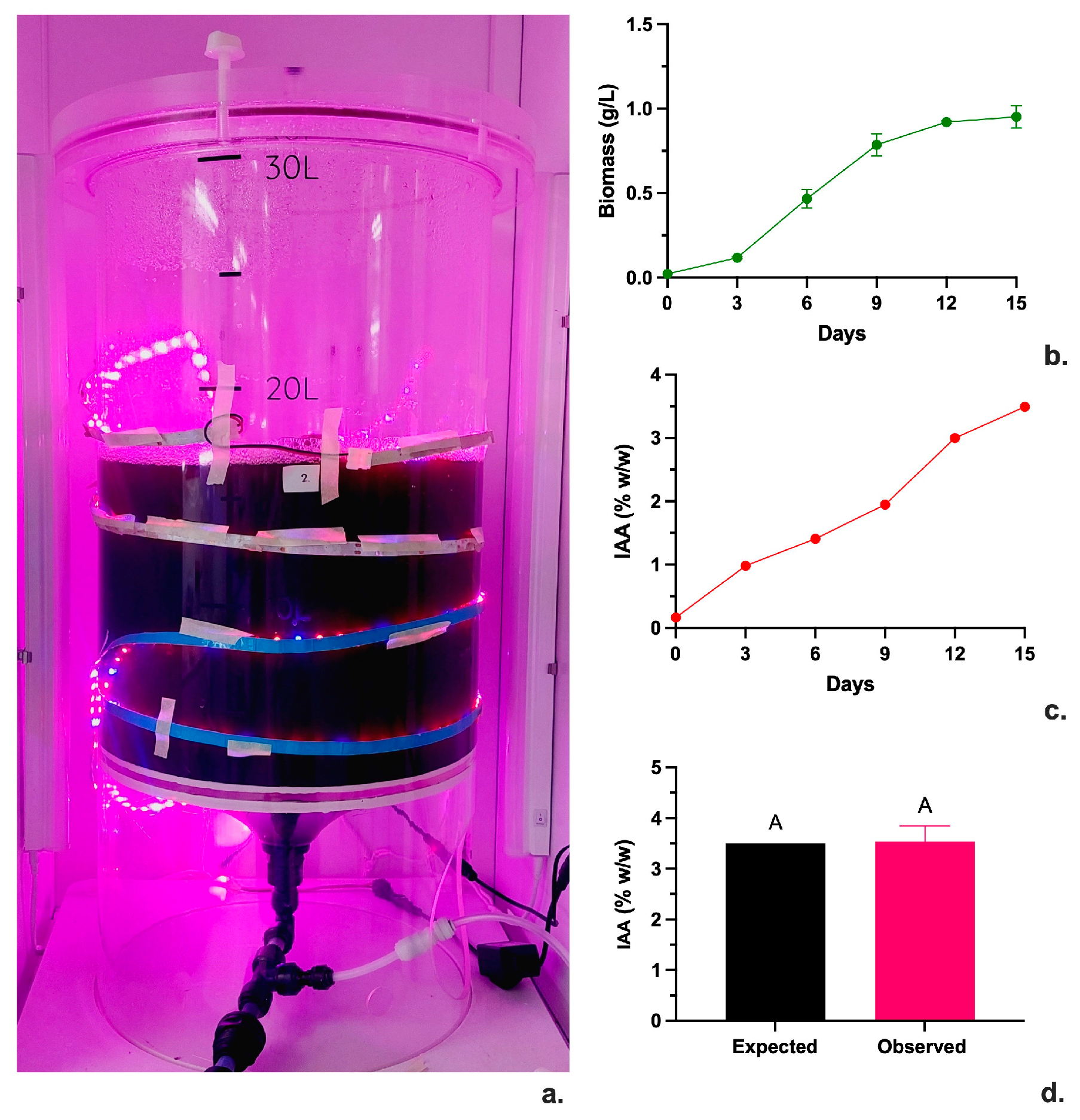 4.3. Evaluation of Optimal Conditions at 20 L PBR