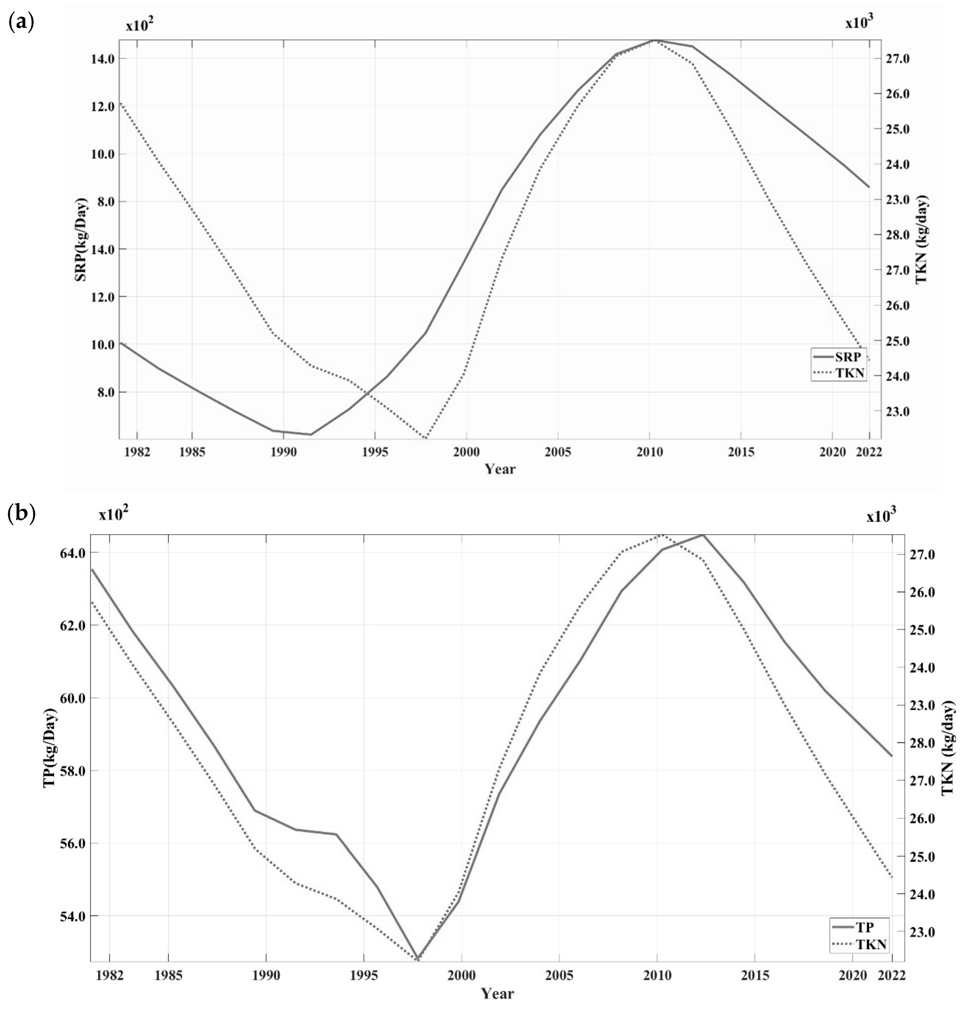 3.3. Comparison of TKN Trends to TP and SRP
