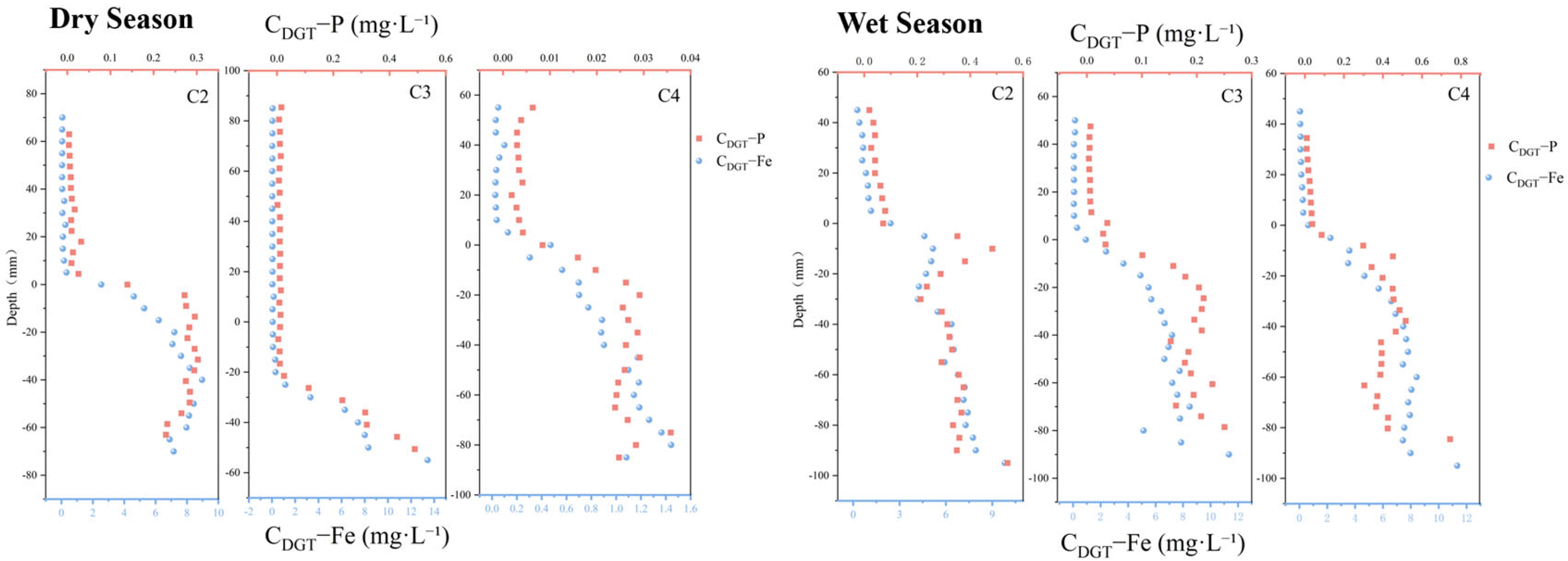 - Zhou, Y.; Wang, H.; Zhang, Y.; Cai, Y.; Yin, H.; Yang, Z.; Li, Q.; Yuan, H. Availability and Diffusion Kinetic Process of Phosphorus in the Water–Sediment Interface Assessed by the High-Resolution DGT Technique. J. Soils Sediments 2021, 21, 3274–3288. [Google Scholar] [CrossRef]