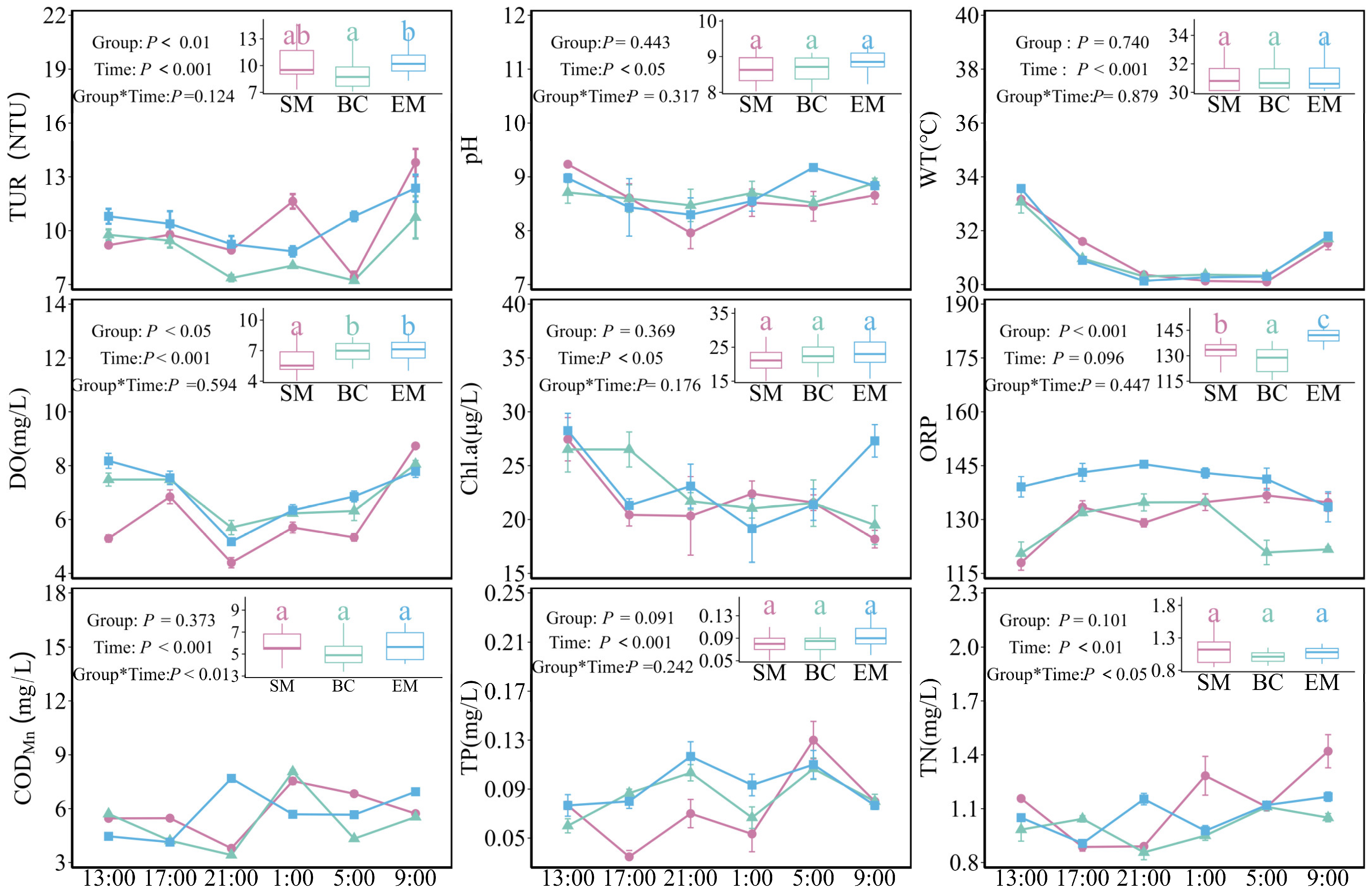 | TN (mg/L) | Group | 2 | 4.580 | p = 0.101 |