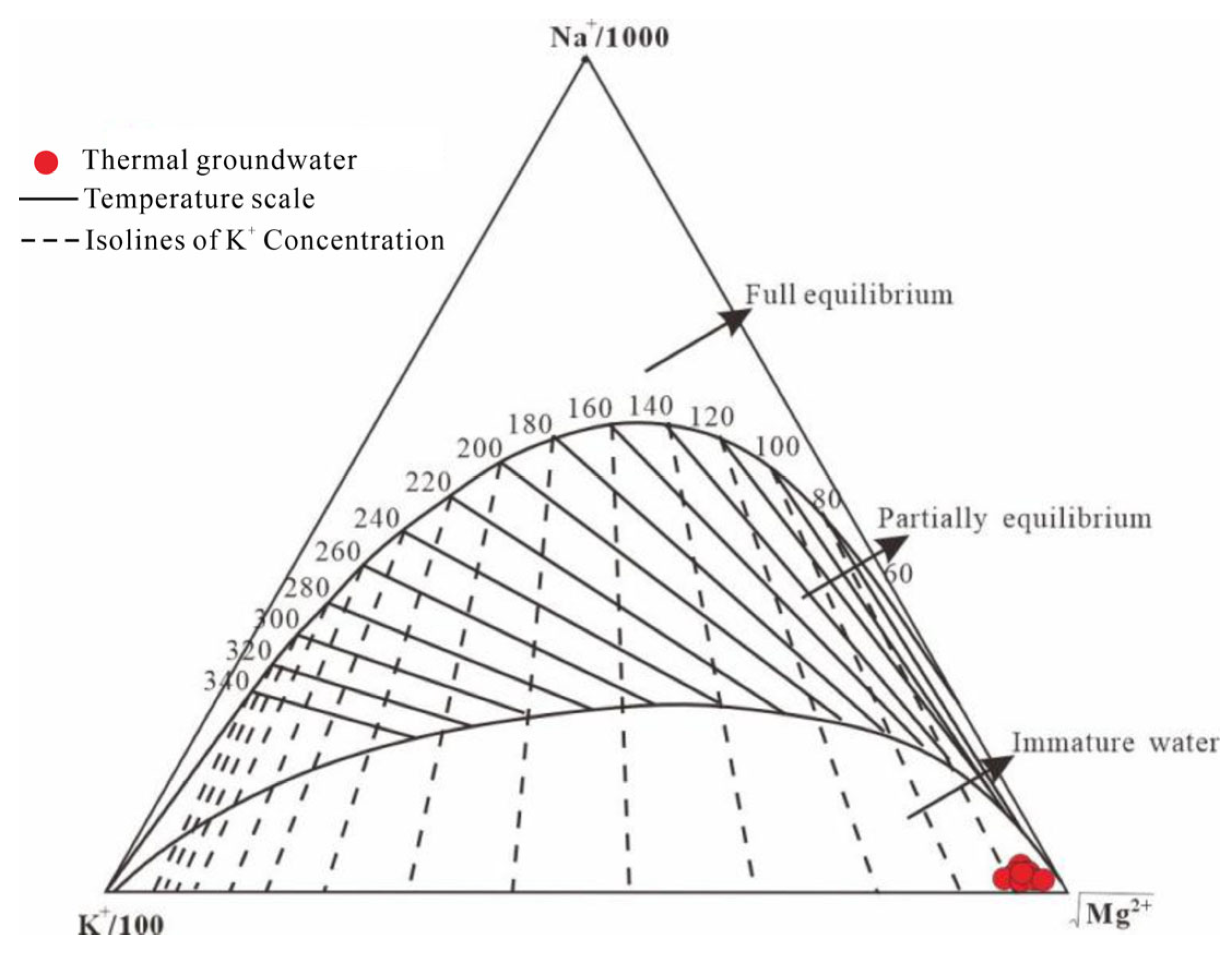 33. Giggenbach, W.F. Geothermal solute equilibria. Derivation of na-k-mg-ca geoindicators. Geochim. Cosmochim. Acta 1988, 52, 2749–2765. [Google Scholar] [CrossRef]