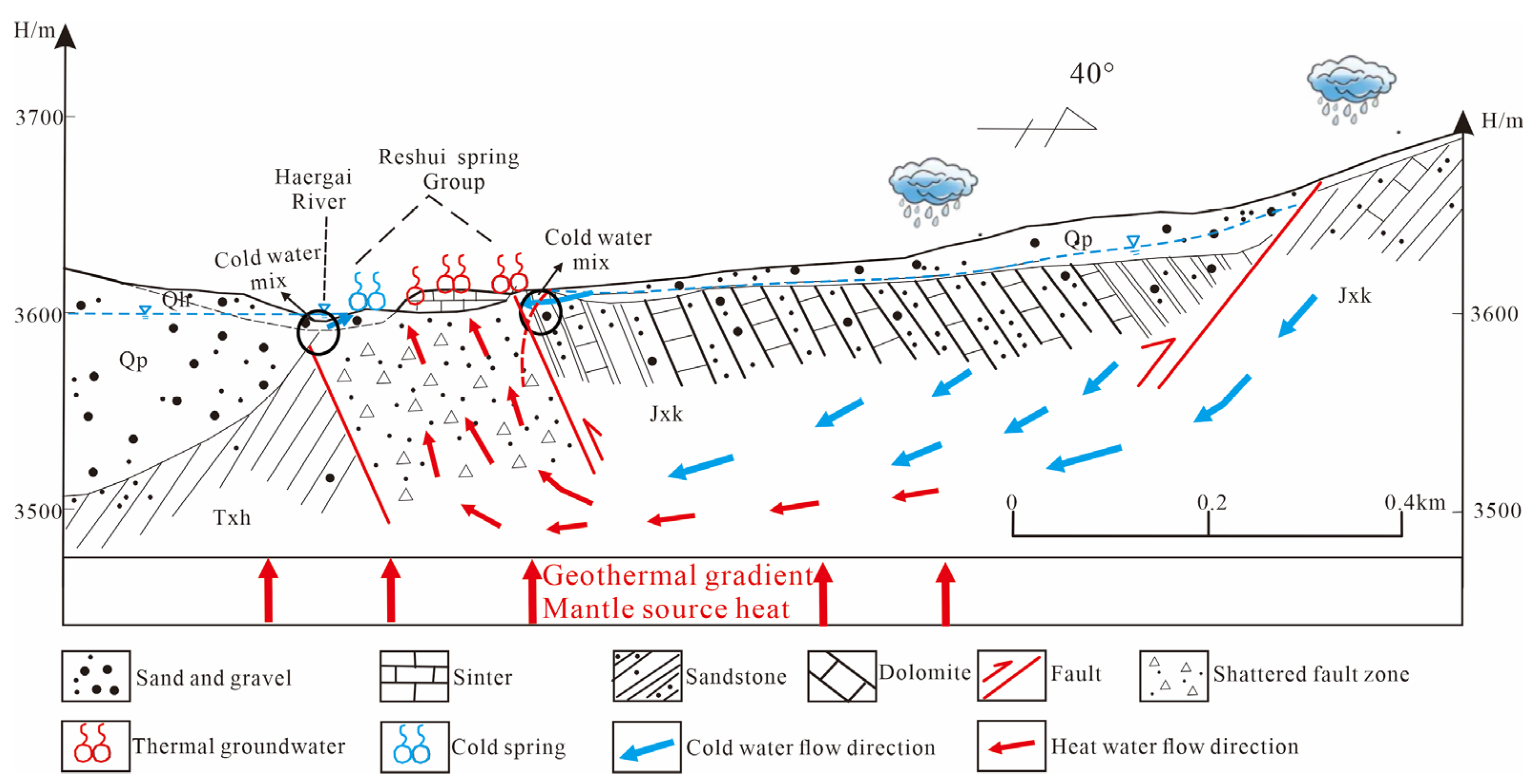 37. Guo, J.; Tang, F.; Guan, H.; Zhao, H.; Zhao, X.; Danzeng, G.; Du, B. Structure-thermal coupling model of the high temperature geothermal system in rujiao on the xizang plateau. Geol. China 2023, 50, 1621–1631. [Google Scholar]
