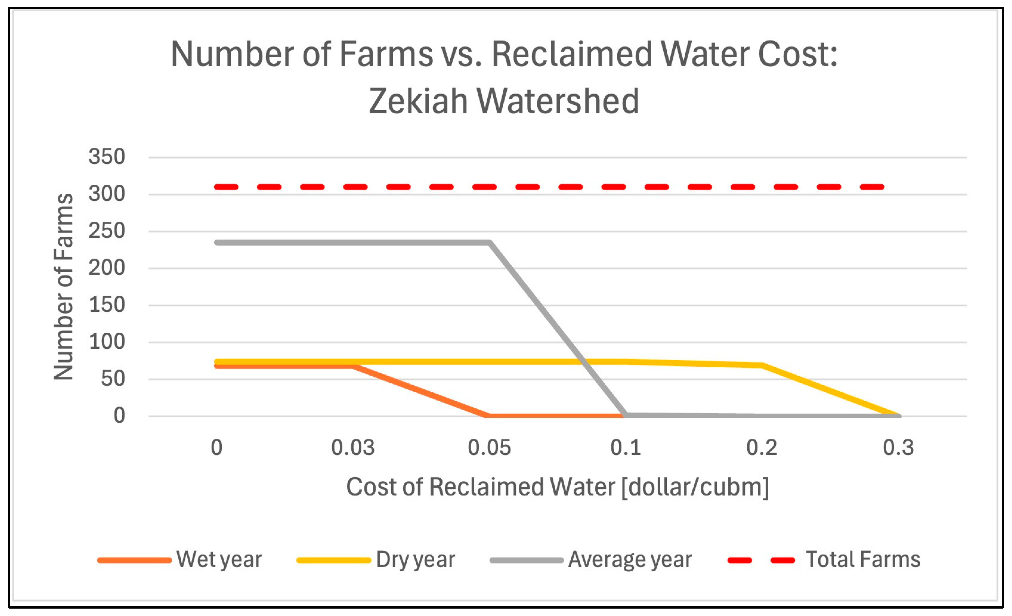 | Highest Feasible Unit Cost Per Volume of Reclaimed Water | Wet ($/m3) | Dry ($/m3) | Average ($/m3) |