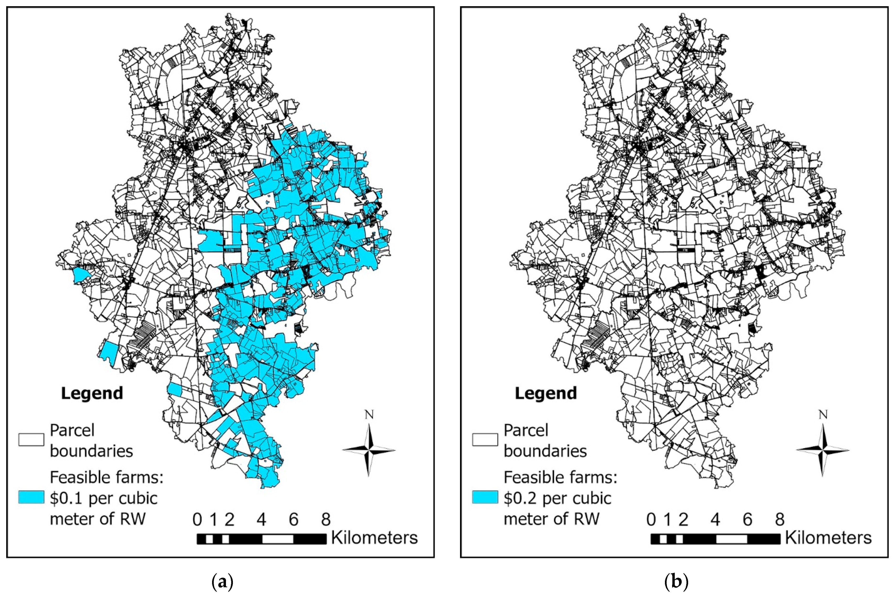 - Brennan, L.E.; Lisson, S.; Poulton, P.L. A farm-scale, bio-economic model for assessing investments in recycled water for irrigation. Aust. J. Agric. Res. 2008, 59, 1035–1048. [Google Scholar] [CrossRef]