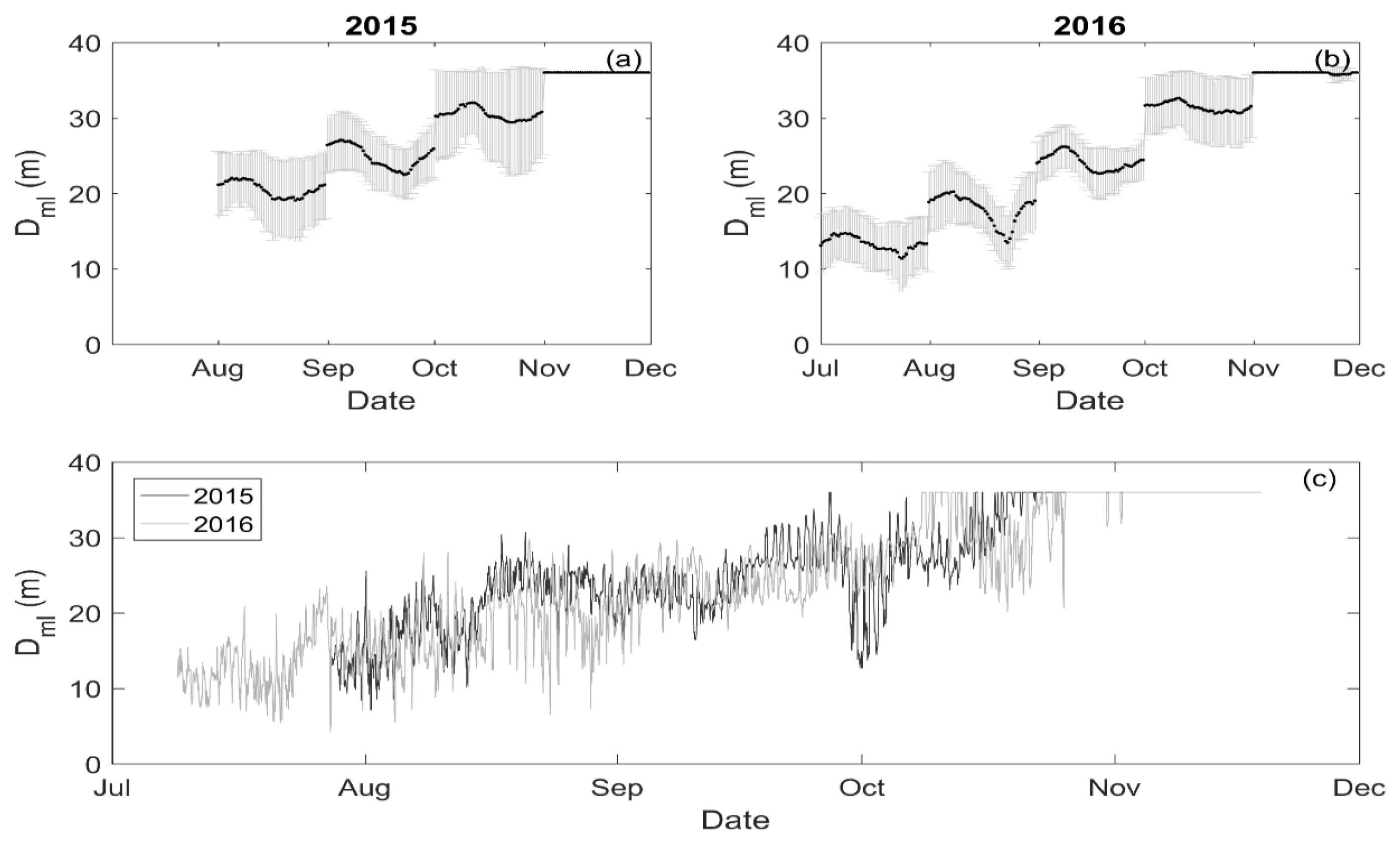 | 3. Water temperature measurements at depths of 0.5, 1.5, 3, 6, 10, 15, 20, 25, 30, and 35 m. | From August to November 2015; from July to November 2016 | |