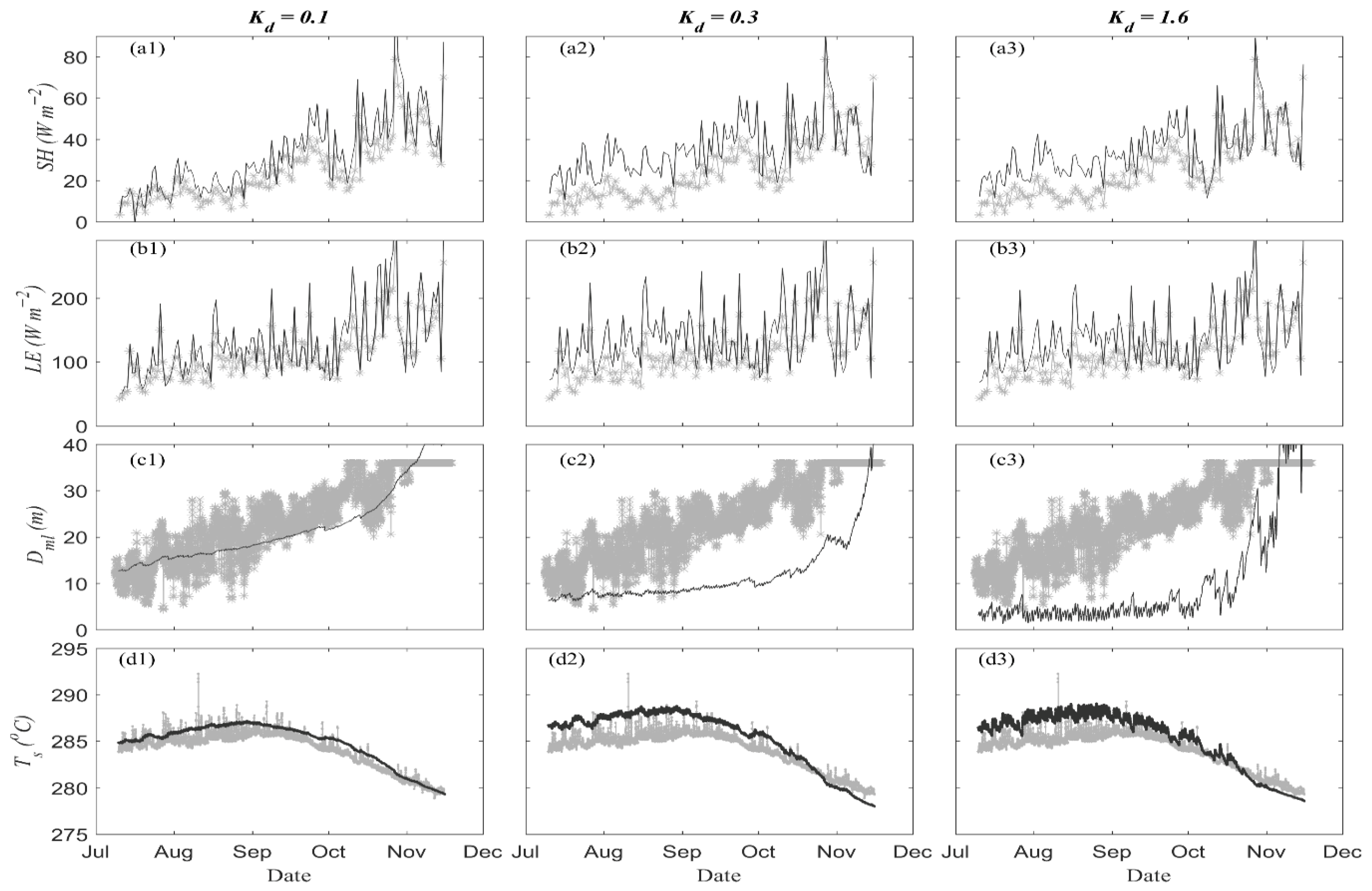 3.1. Sensitivity Analysis of Lake Depth and Extinction Coefficient by Flake Modeling