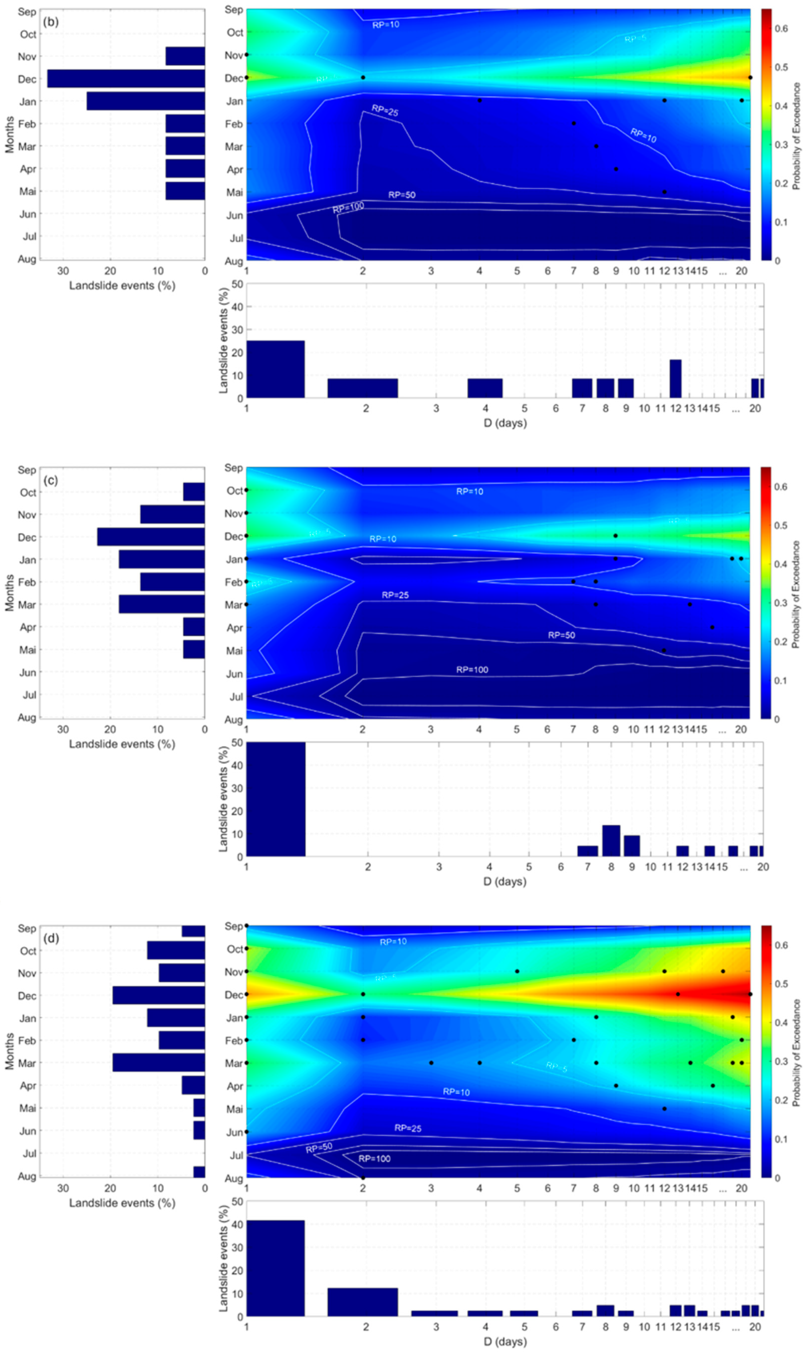 4.4. Monthly Probability of Exceedance and Return Period of the Combined Thresholds