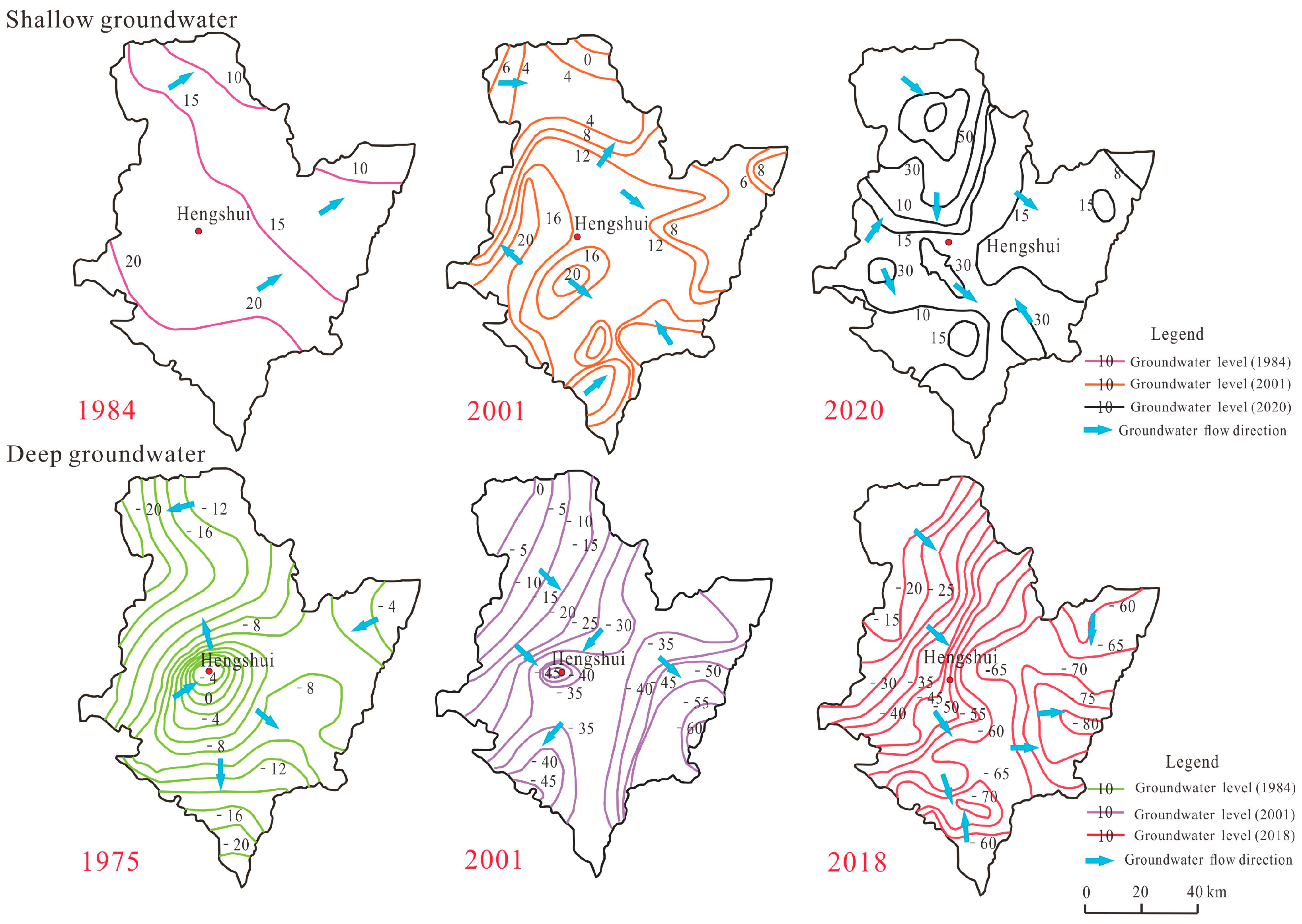 32. Wu, J.; Hao, Y. Analysis of shallow groundwater dynamic characteristics in Hengshui city in recent 50 years. Ground Water 2016, 38, 78–80. (In Chinese) [Google Scholar]